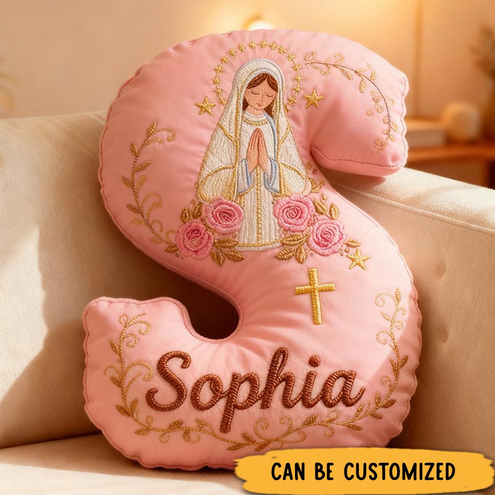 Personalized Virgin Mary Mosaic Art Letter Pillow with Custom Name Christian Mythology Home Decor Catholic Gift for Her Feminine Saint Graphic 3DPrint.