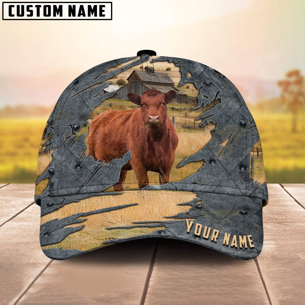 Red Brangus Happiness Customized Name Cap Farmer Baseball Cap Unique Gifts For Farmers.