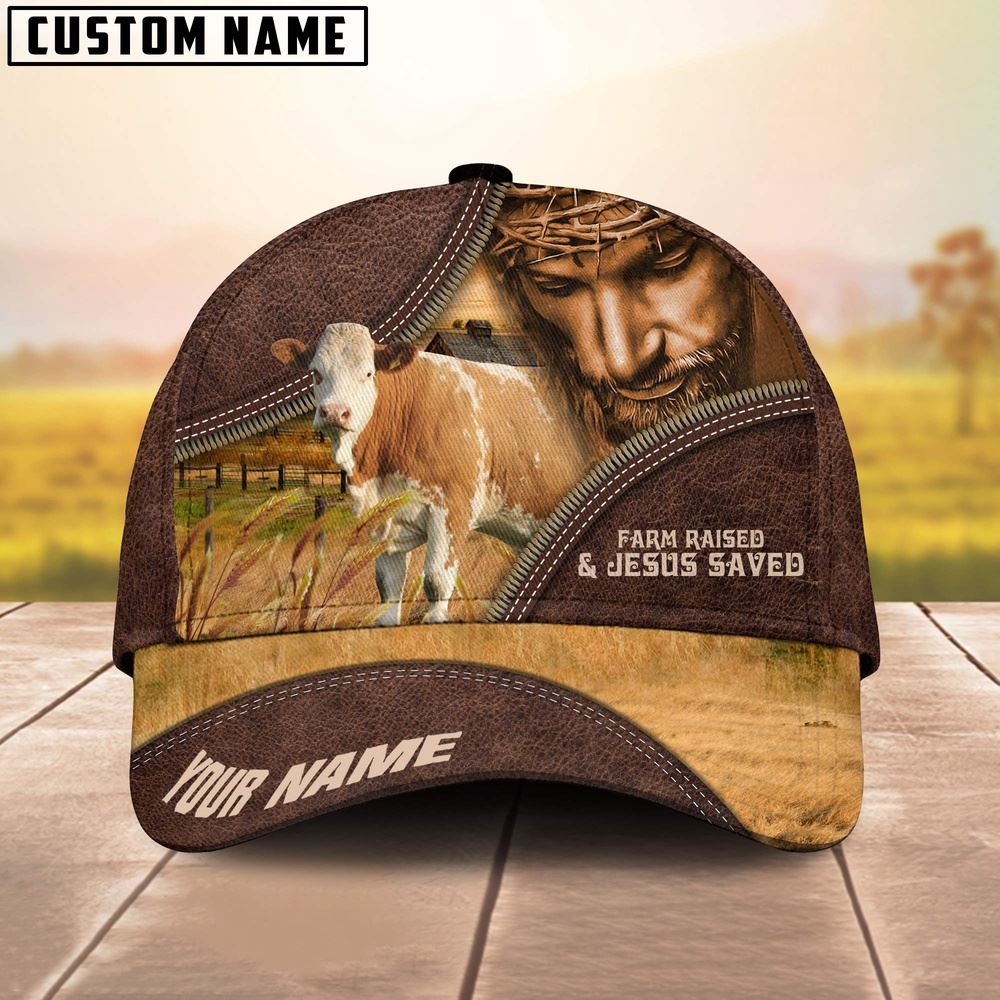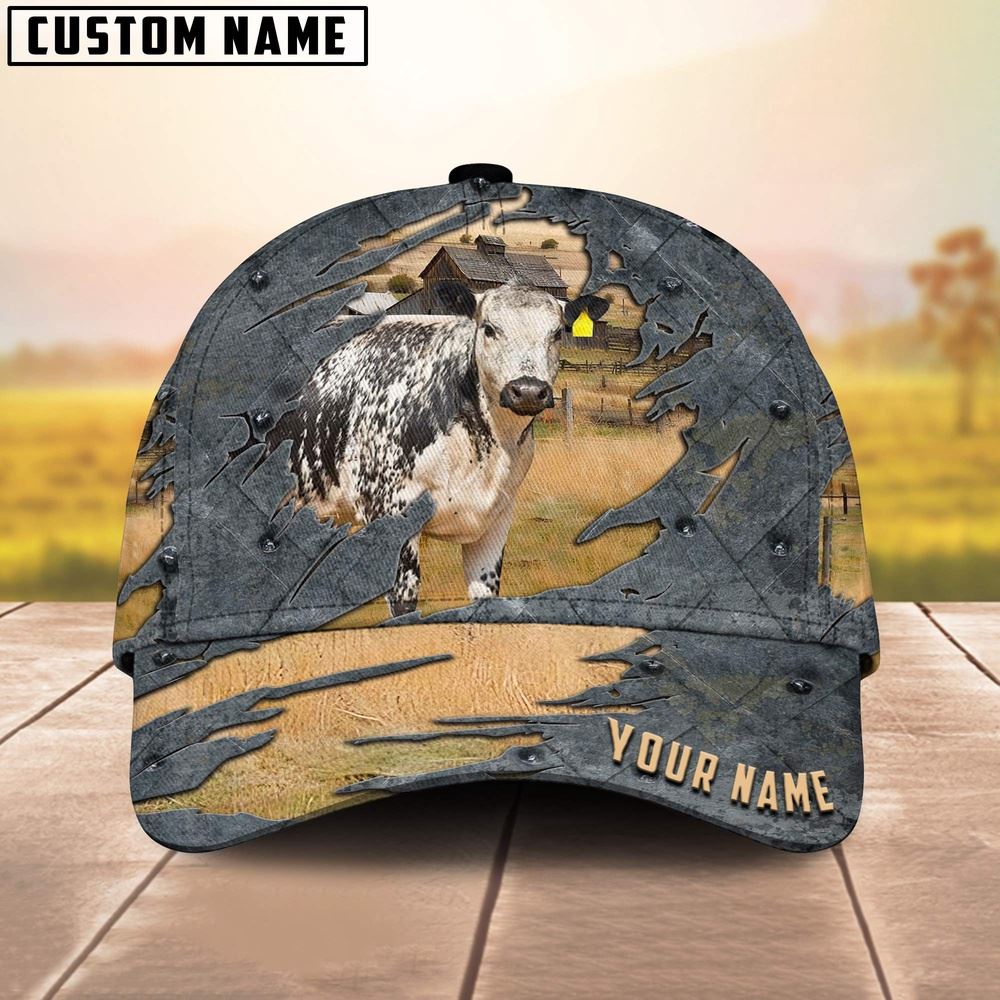 Texas Belted Galloway Leather Pattern Art Customized Name Cap Farmer Baseball Cap Gift For Farmer