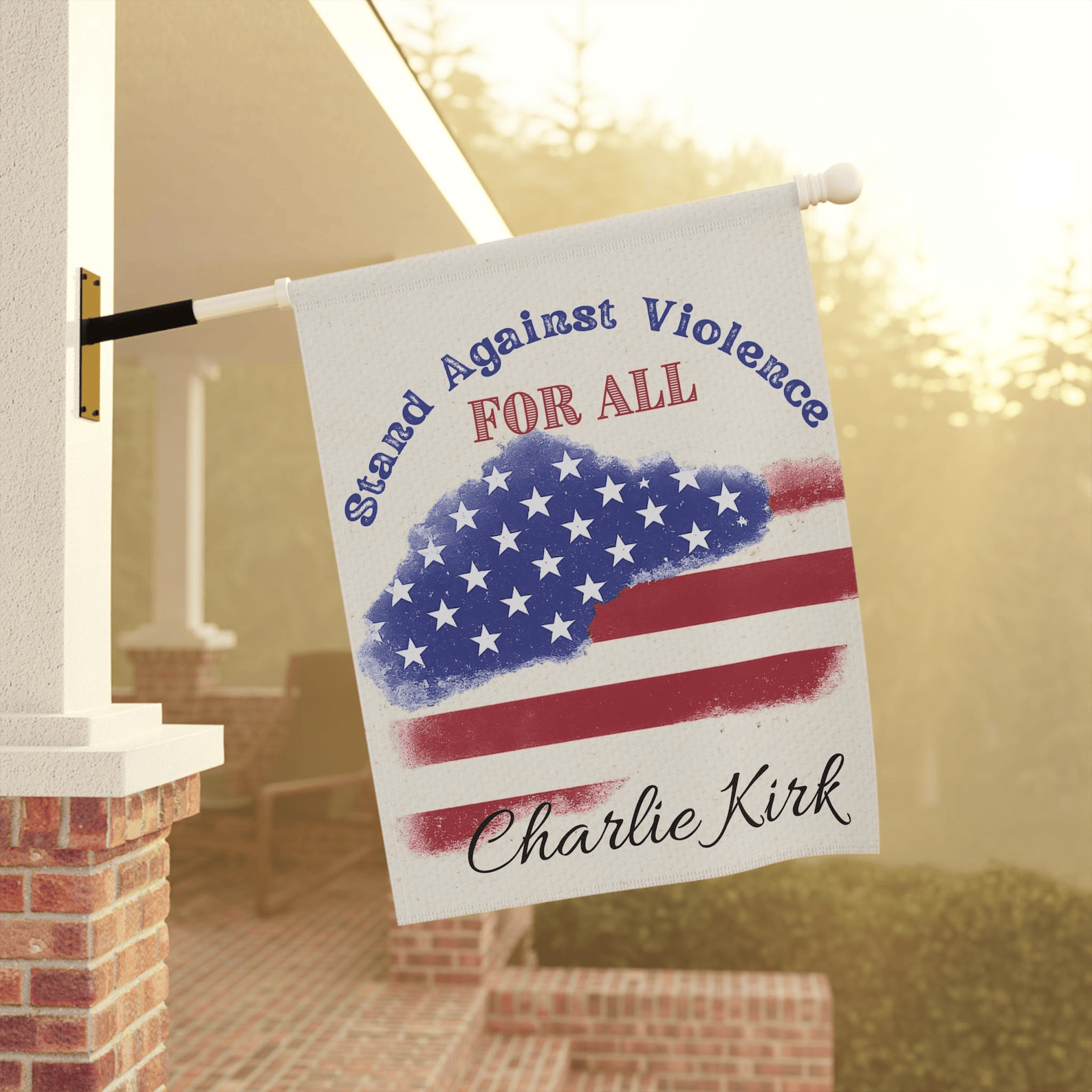 Charlie Kirk Patriotic Garden Banner Stand Against Violence Decor American Flag Memorial for Charlie Kirk.