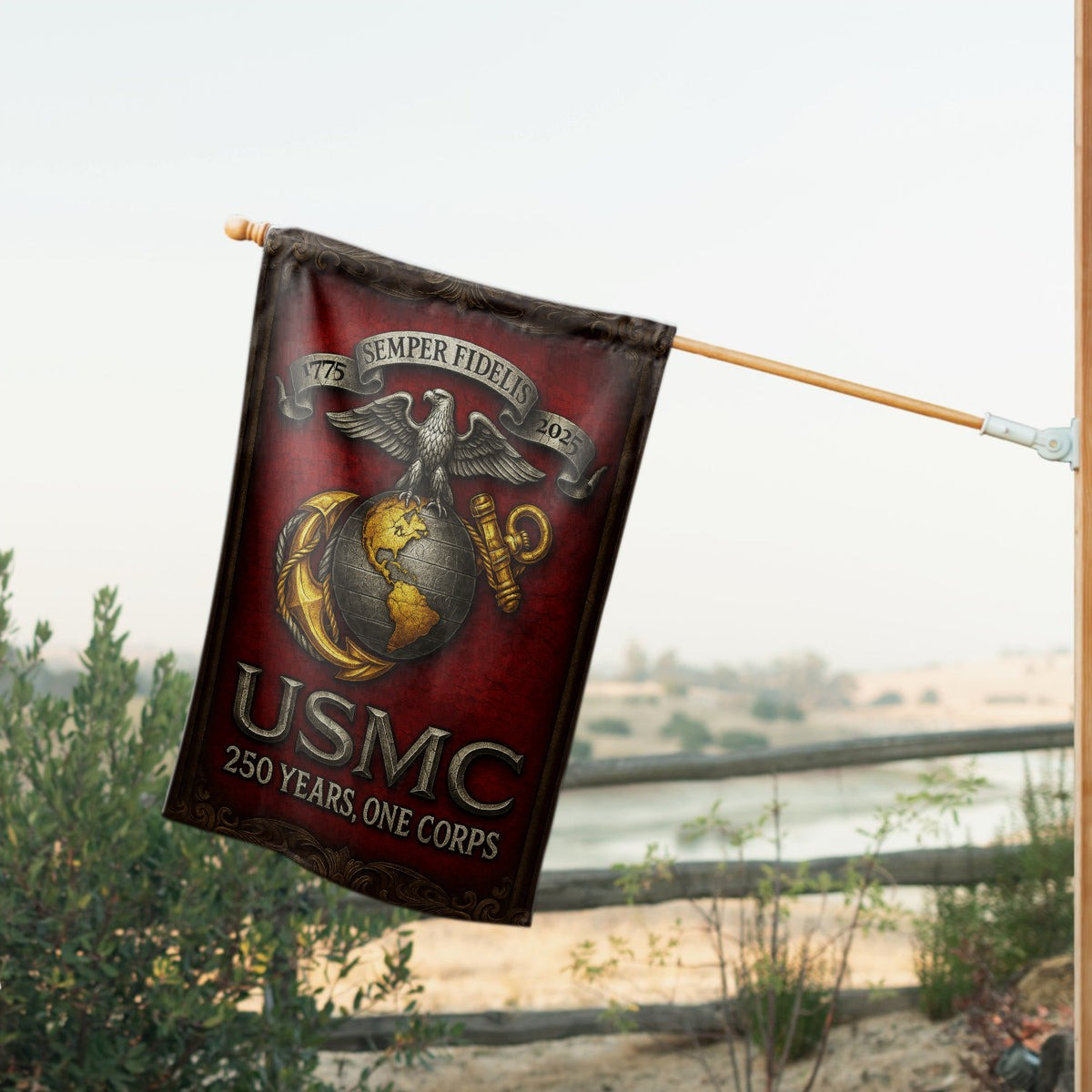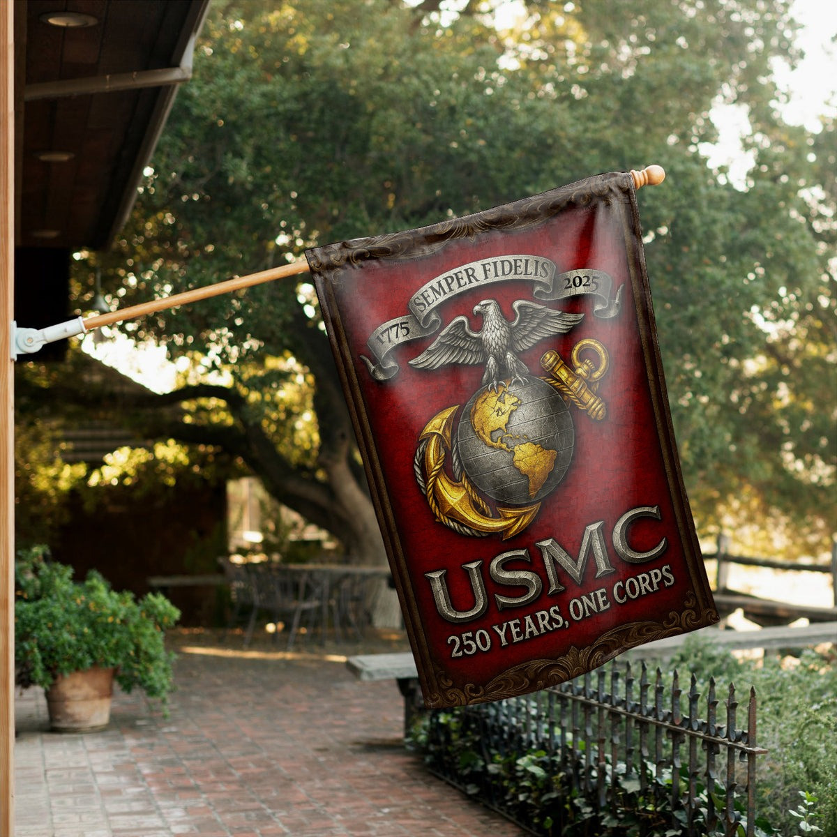US Marine Corps Veteran Flag 250 Years One Corps Semper Fidelis Home Decor Gifts.