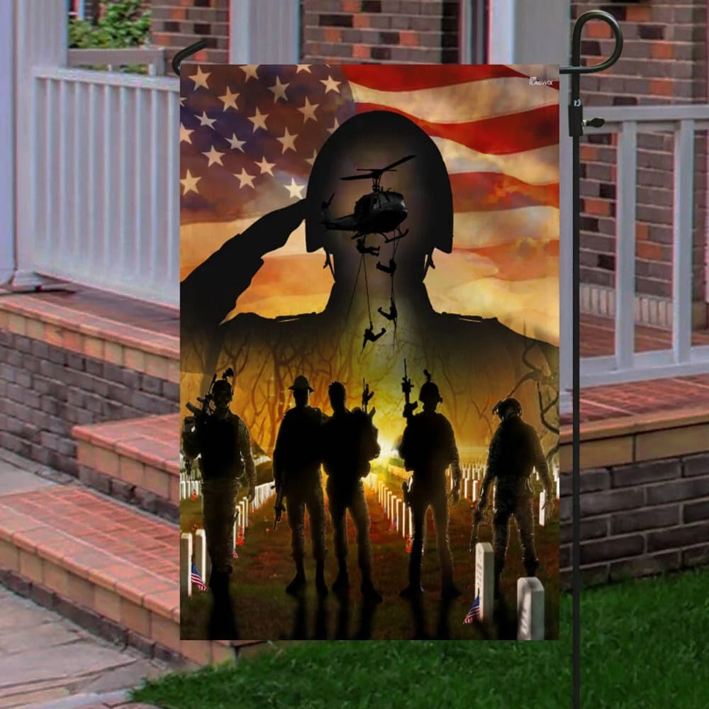US Veteran Memorial Flag With Combat Boots Patriotic Military Home Decor.