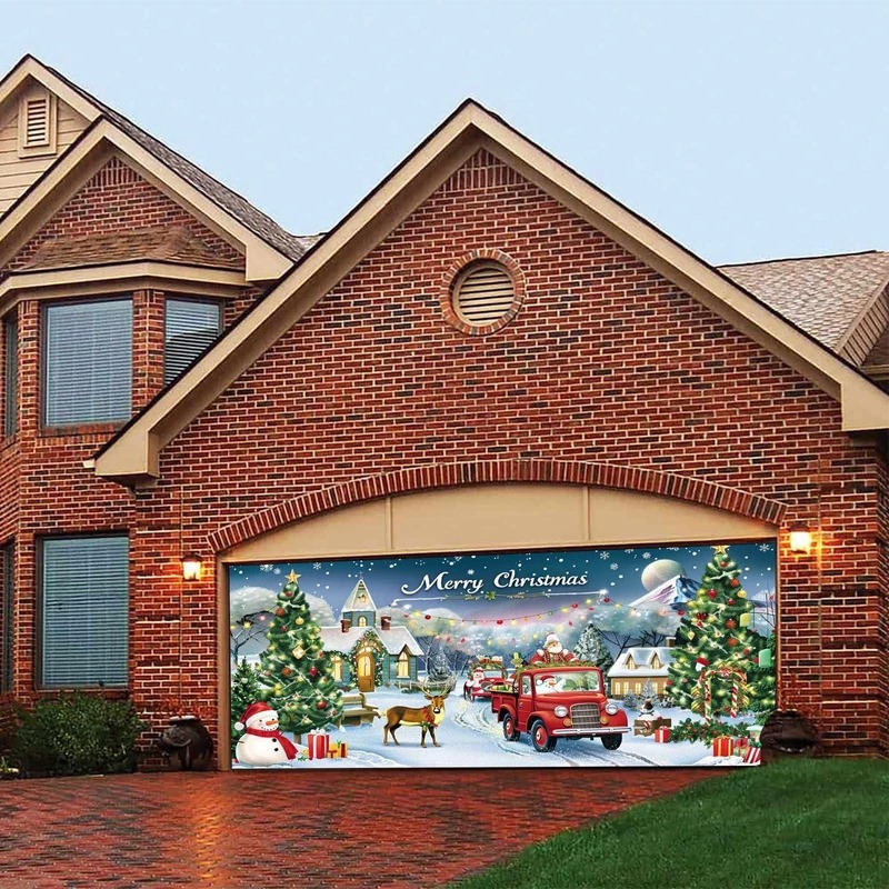 Gnome Let It Snow Christmas Garage Door Cover Festive Outdoor Decoration Gnome Gifts.