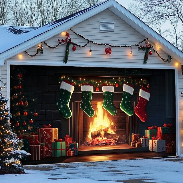 Merry Christmas And Happy New Year Garage Door Cover Winter Outdoor Decoration Gifts.
