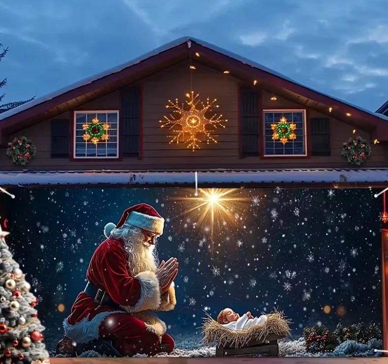 Santa Beard Merry Christmas Garage Door Cover Funny Holiday Garage Decor Santa Secret Gifts.