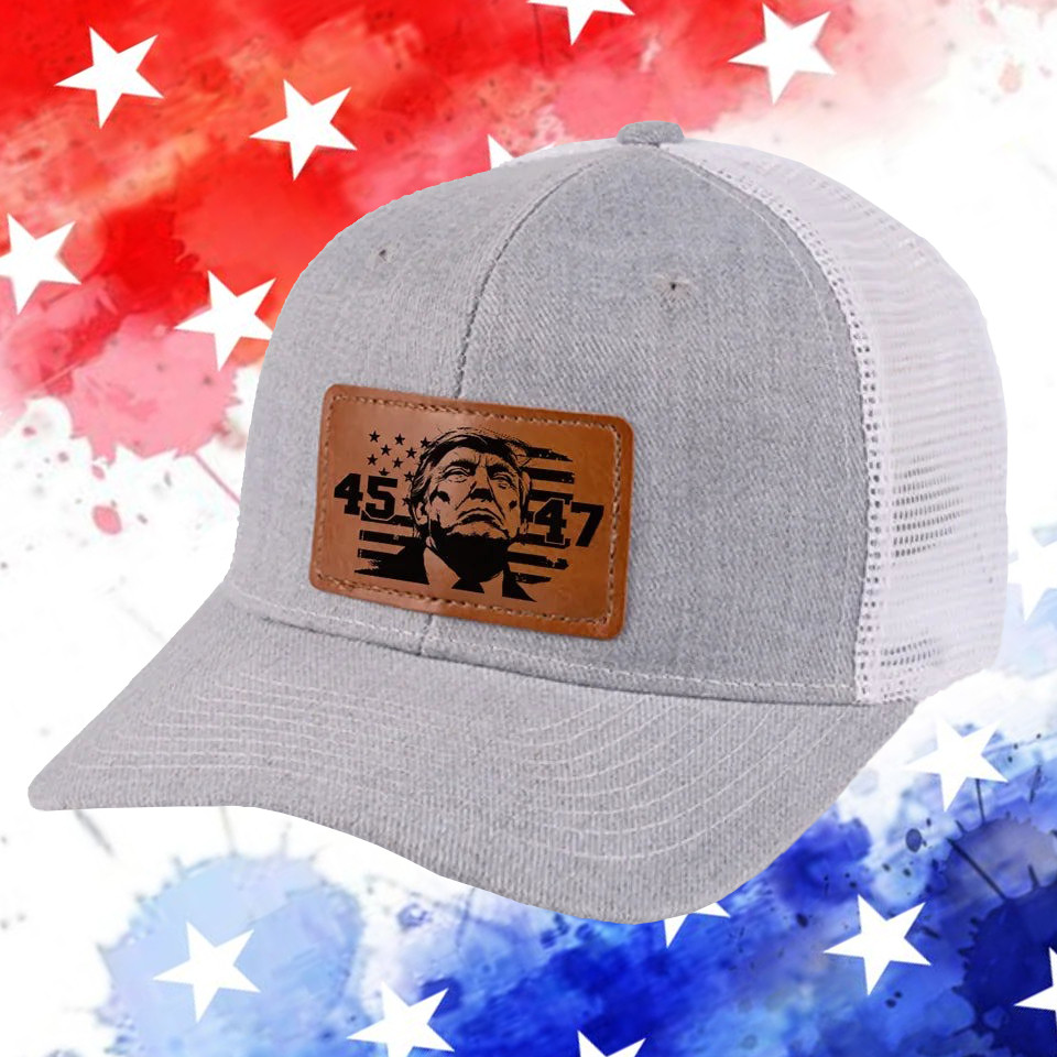 Trump 45 47 Trucker Hat Support President USA Flag Trump’s Face Graphic Funny Cap Gifts.