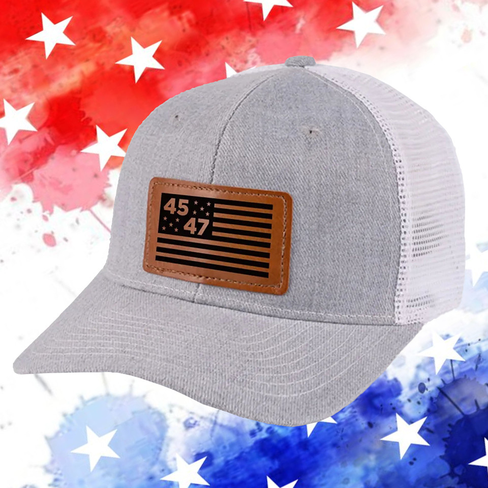 Trump 45 47 Trucker Hat USA Flag Patriotic Cap Presents For Trump Supporters.