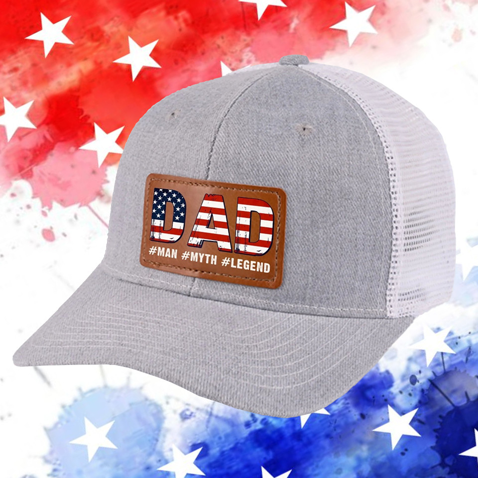 Veteran Dad USA Flag Trucker Hat Man Myth Legend Patriotic Cap Gift For Conservative Supporters.