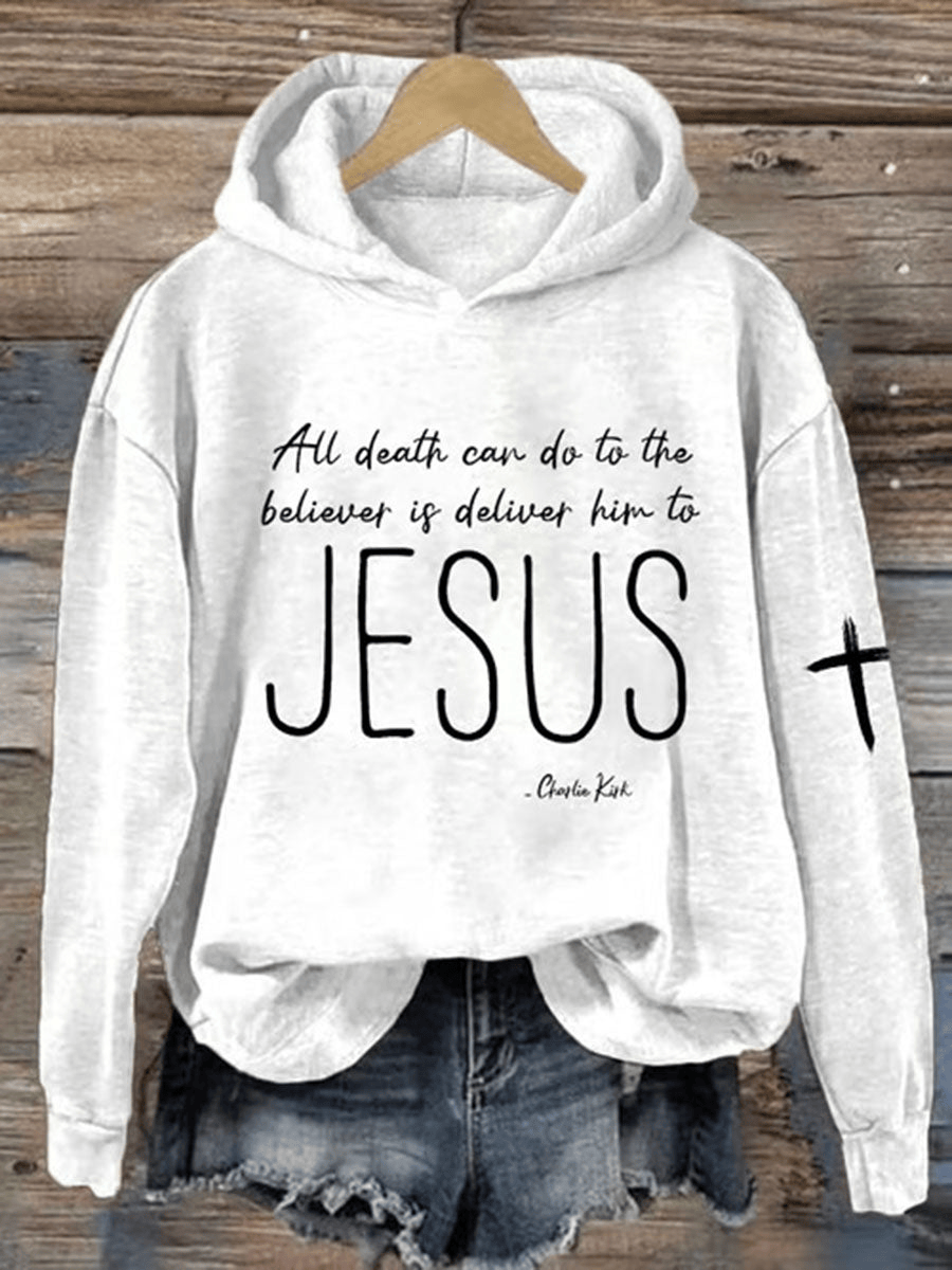 Charlie Kirk Merch All Death Can Do To The Believer Is Deliver Him To Jesus Printed Casual Hoodie.
