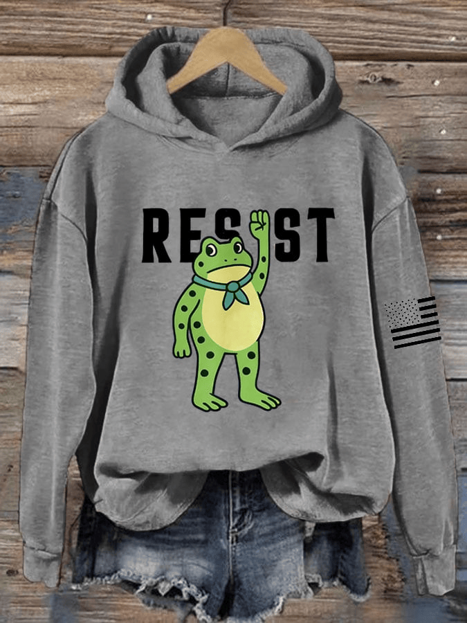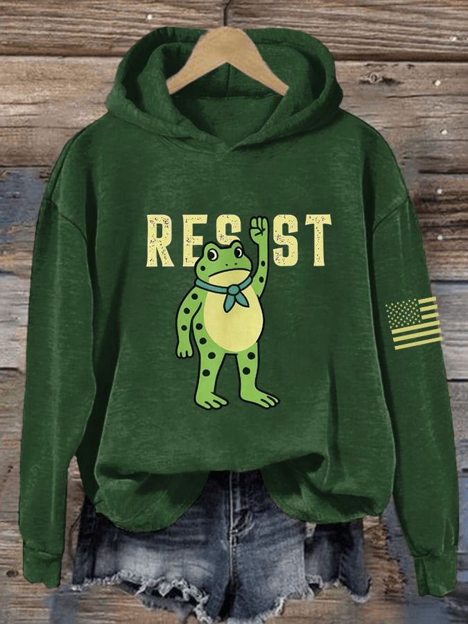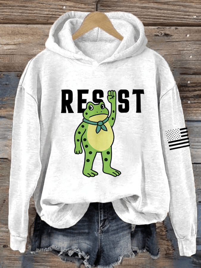 FDT Polish Frog Print Hooded Sweatshirt Resist Crewneck Anti Trump Shirt Gift for Her.