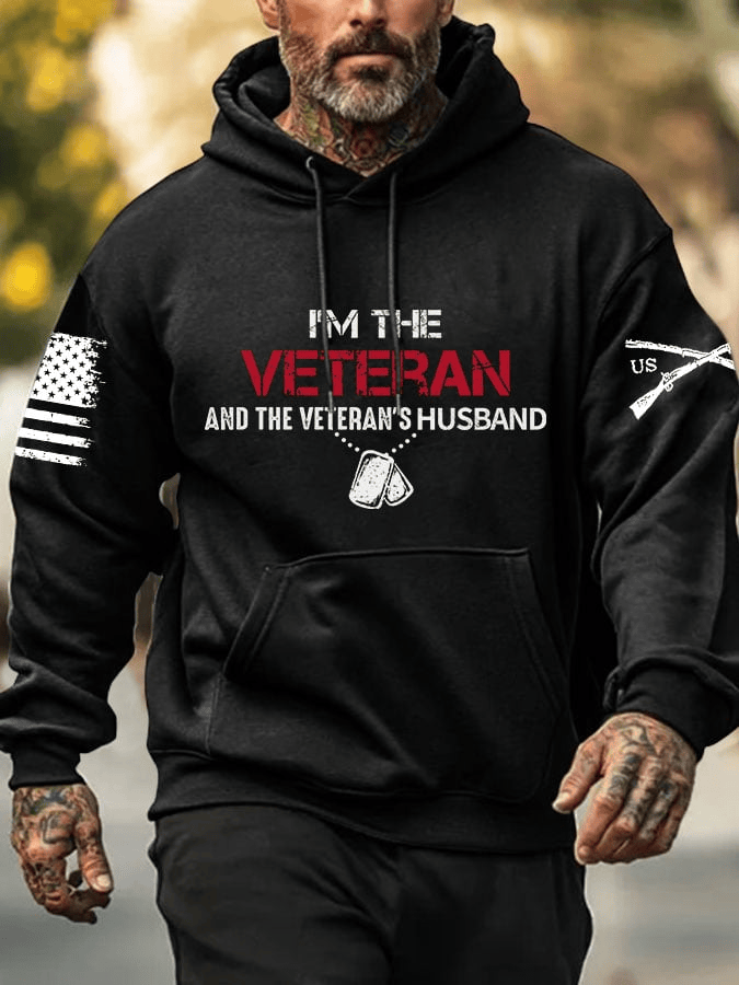 Men’s Vintage Veteran Print Casual Hoodie Veteran Day Gift for Dad