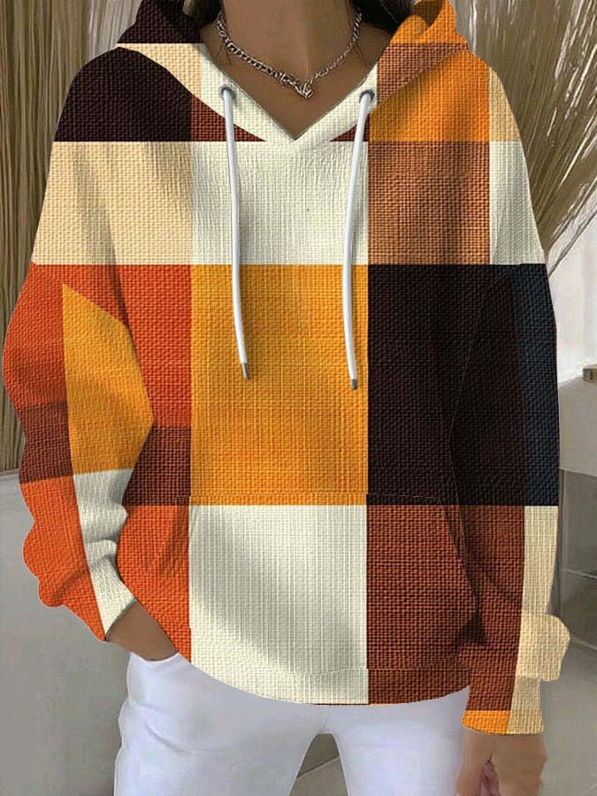 Patchwork Women’s Hoodie Color Block Contrast Texture Hoodie Caro Grey Gifts For Her