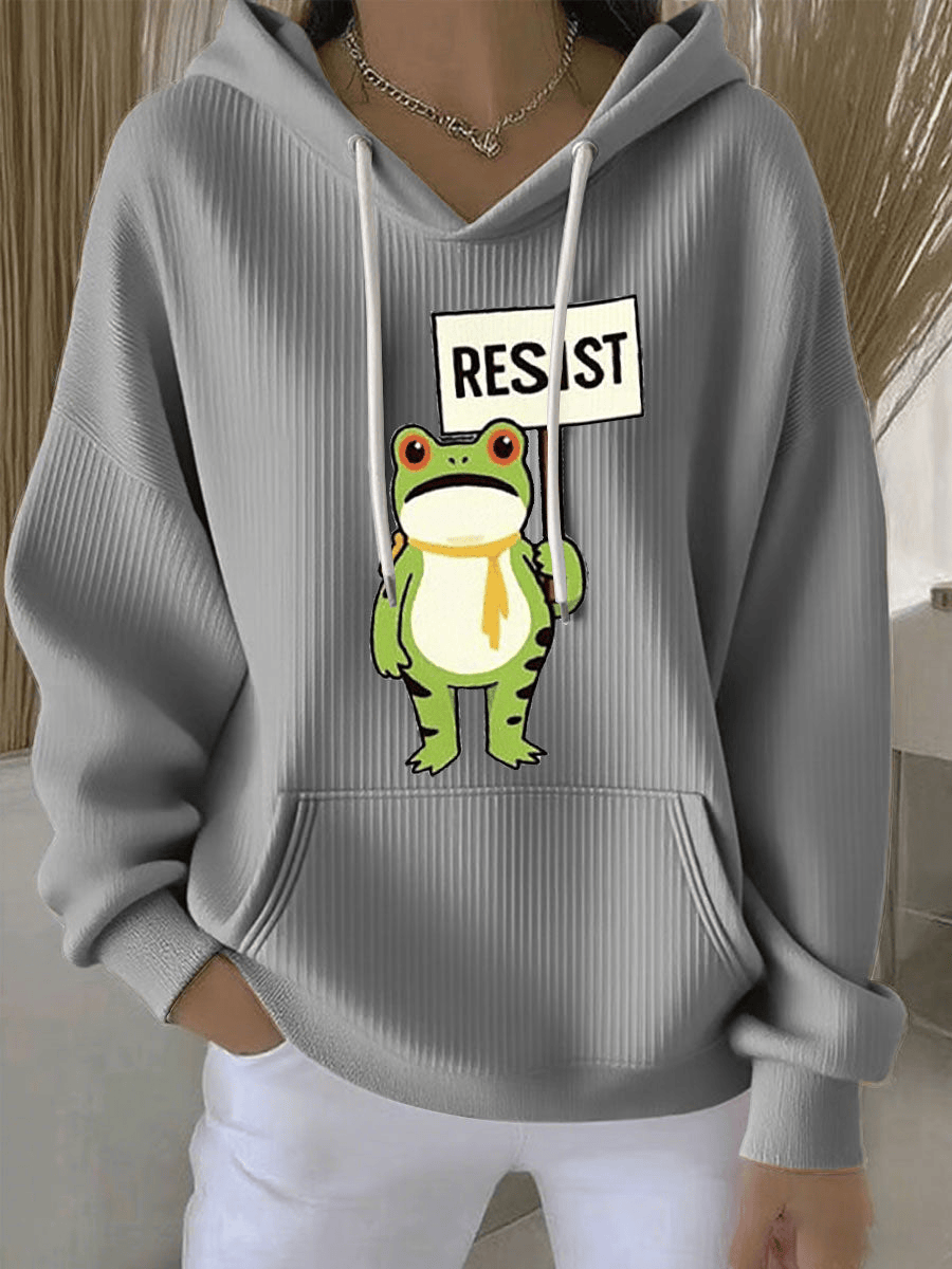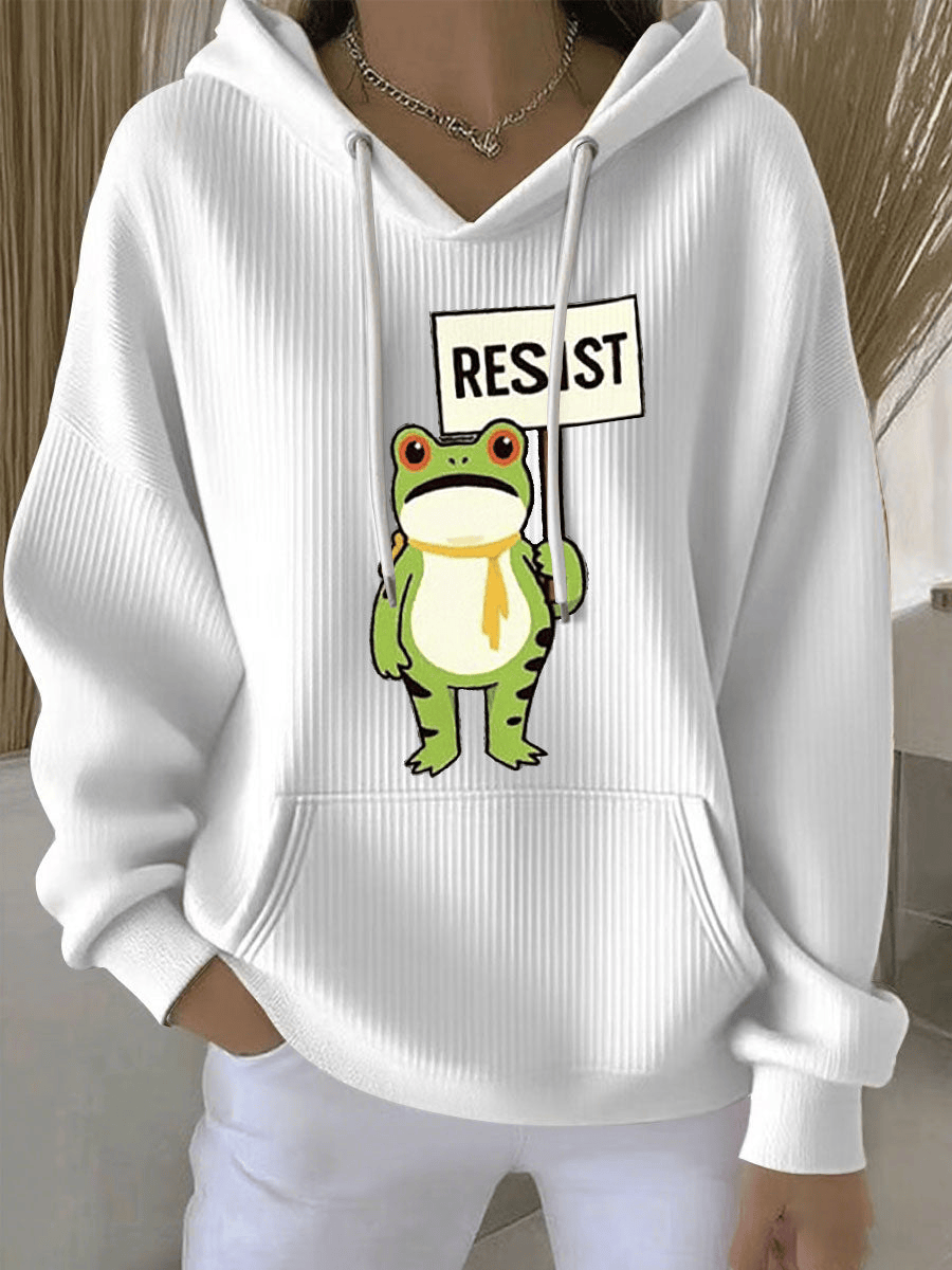 Portland Frog Print Casual Hoodie Resist Hoodie Gift for Democrats Supporters.