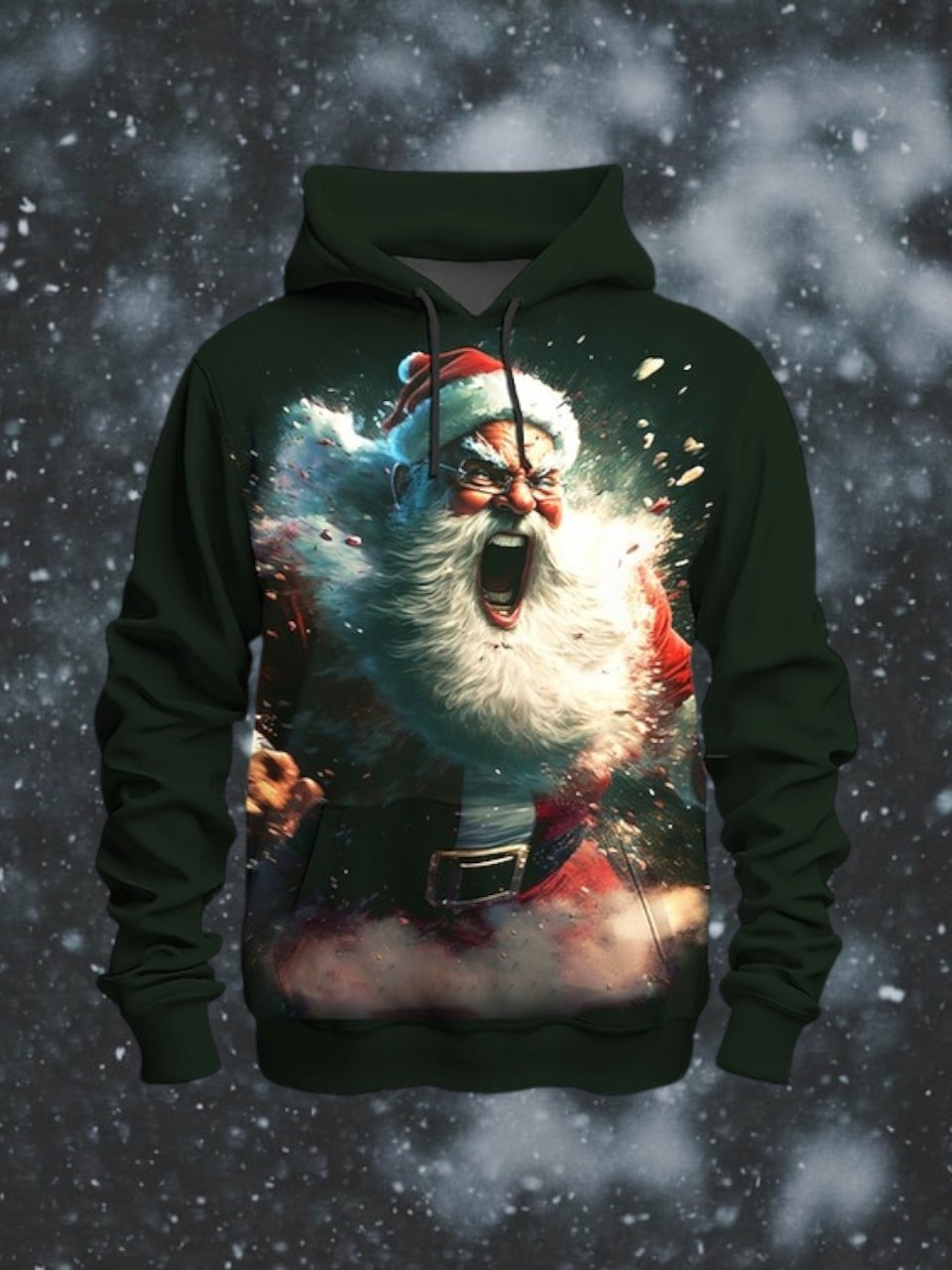 Raging Santa Claus Wearing Glass Christmas Hoodie Angry Santa Festival Outfit Gifts For Him.