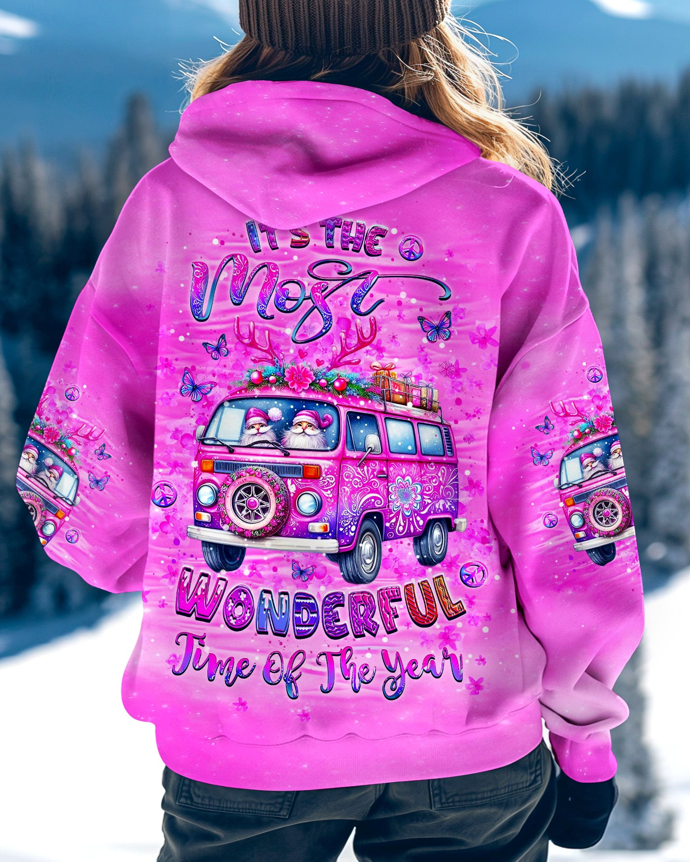 Santa Driving Hippie Bus Hoodie Santa Claus Is Coming Christmas Clothes Gifts For Women