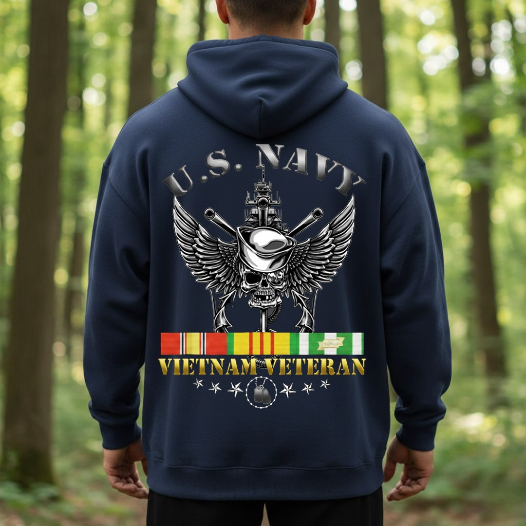 U.S. Navy Vietnam Veteran Hoodie Skull Sailor With Warship And Service Ribbon Veteran Gifts.