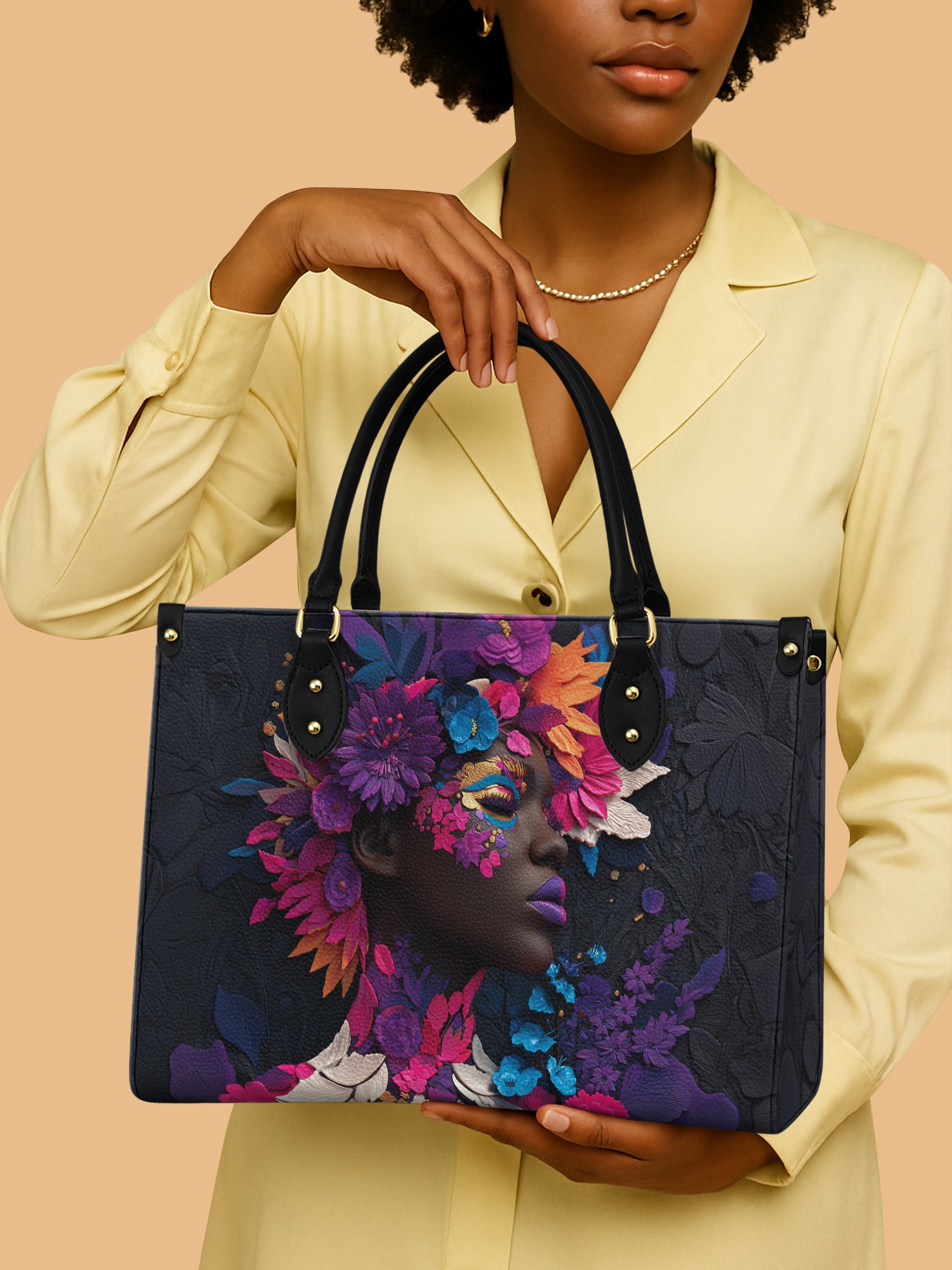 Black Queen Dark Brown Tone Leather Bag African Art Bag Black Woman Presents For Her.