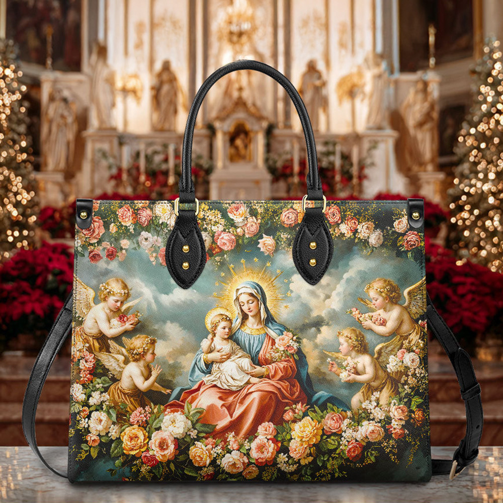 Heavenly Grace In Radiant Splendor Leather Bag Virgin Mary Handbag Xmas Gift Ideas For Her.