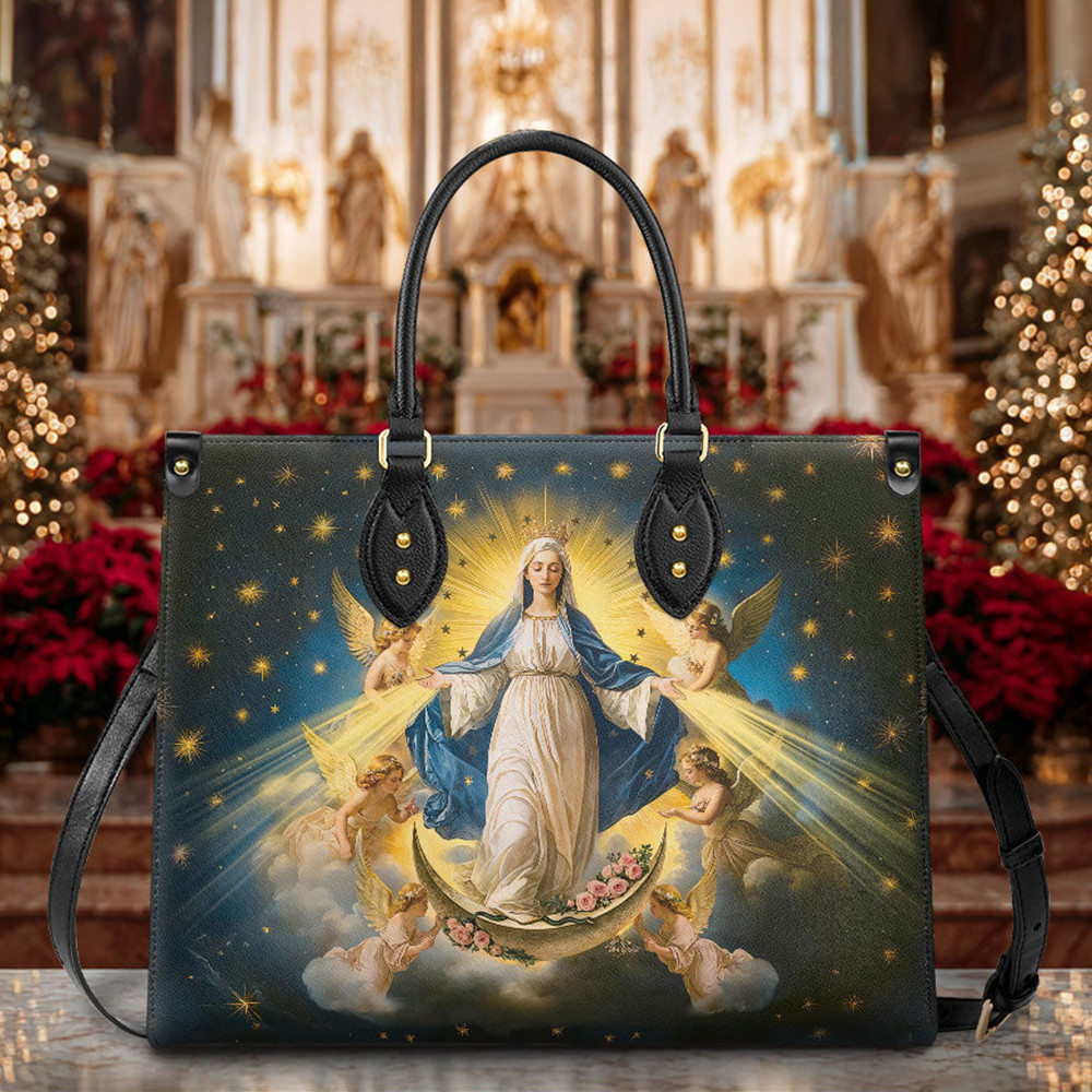 Virgin Mary Grace Leather Bag Pink Rose Christian Handbag Great Christmas Gifts For Mom.
