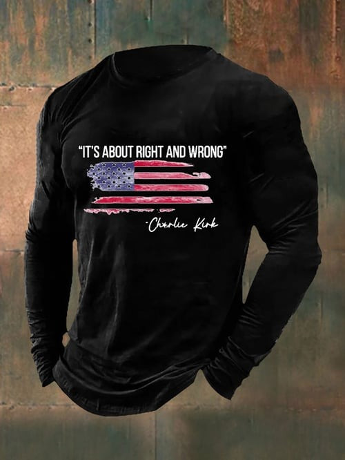 Charlie Kirk It’s About Right And Wrong Long Sleeve Shirt TPUSA Patriotic MAGA Support Gifts