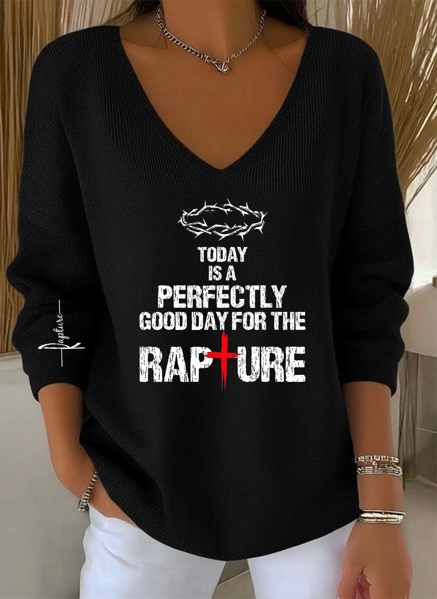 Rapture Long Sleeve V-Neck Shirt Today Is A Perfectly Religious Gift Apparel For Women.
