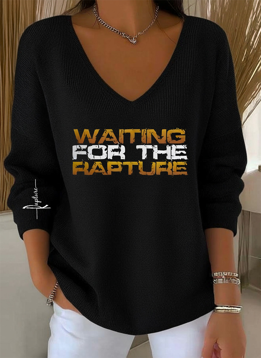 Rapture Long Sleeve V-Neck Shirt Waiting For The Rapture Religious Gift Apparel For Women