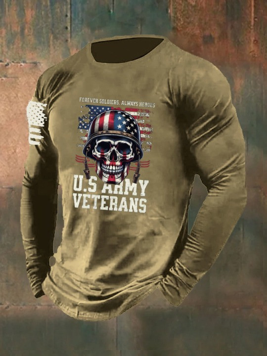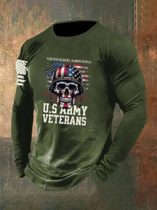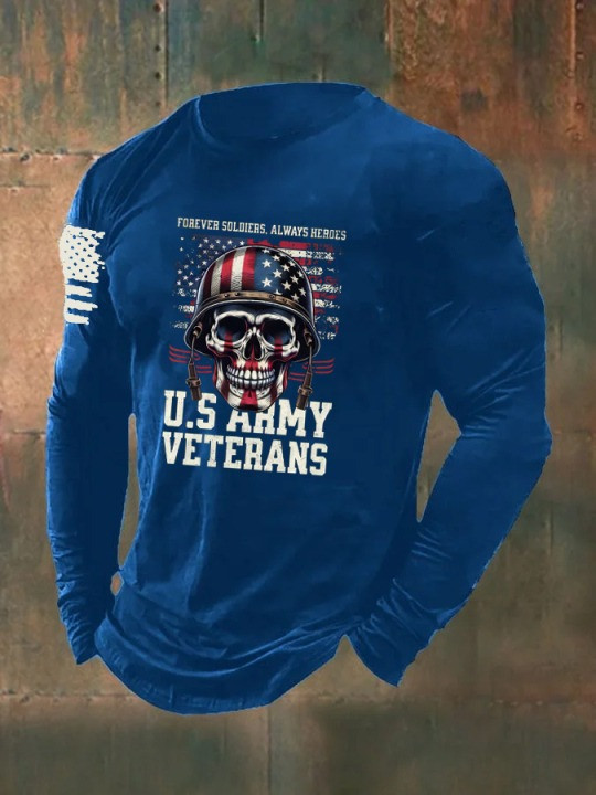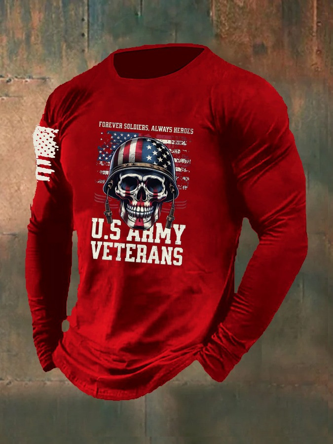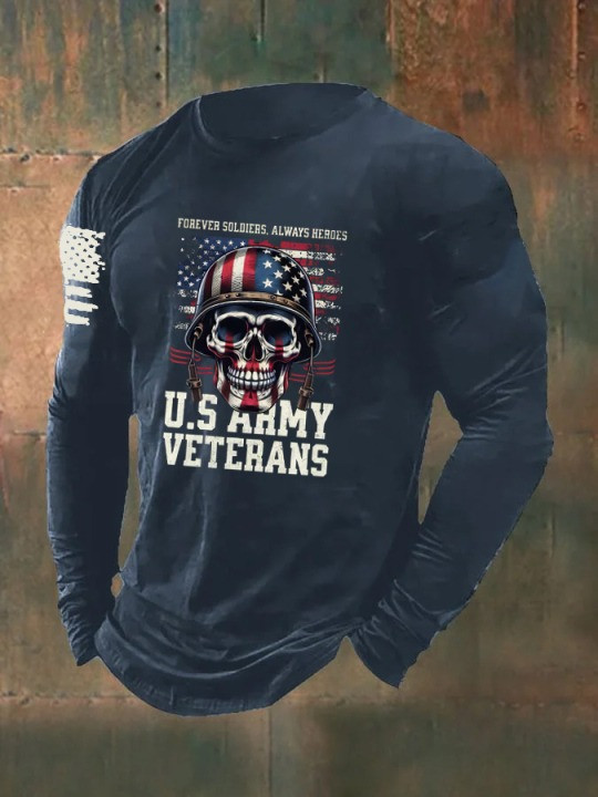 U.S Army Veteran Long Sleeve Shirt Skull American Flag Forever Soldier Outfit Memorial Gifts.