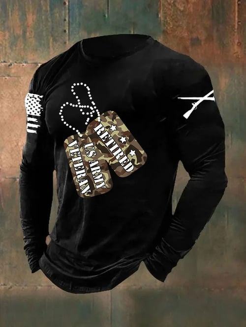 United States Army Veteran Long Sleeve Shirt Dog Tag Retired US Army Veteran Merch Ideas.