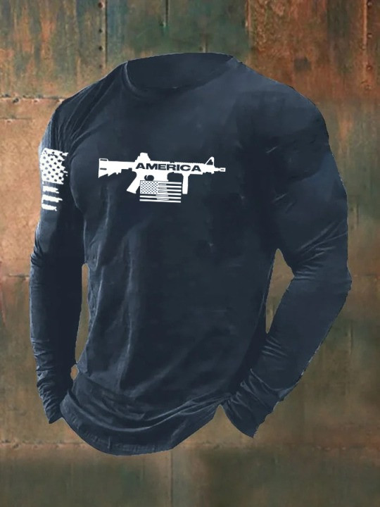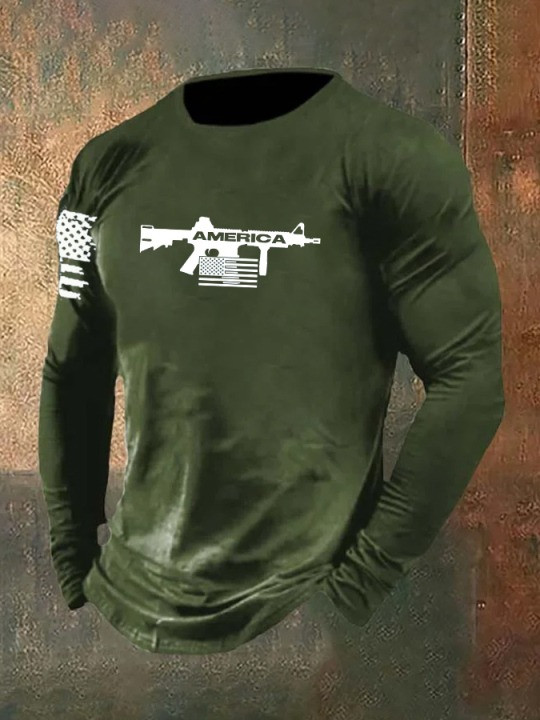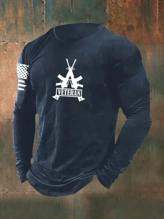 United States Veteran Men’s Long Sleeve Shirt American Gun USA Flag Veteran Day’s Outfit Gifts.
