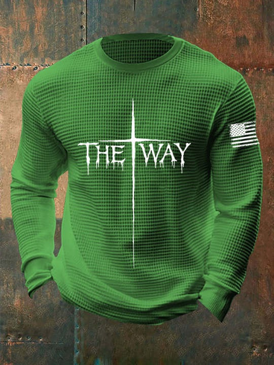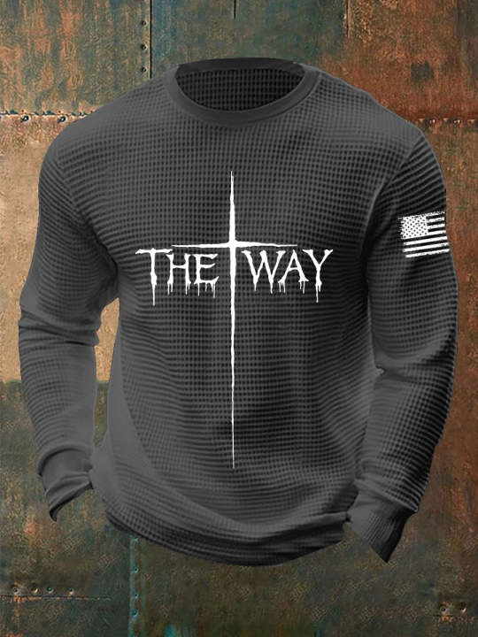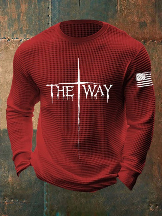United States Veteran Waffle Long Sleeve Shirt Cross The Way USA Flag Christian Gift Ideas.