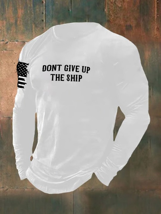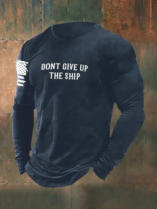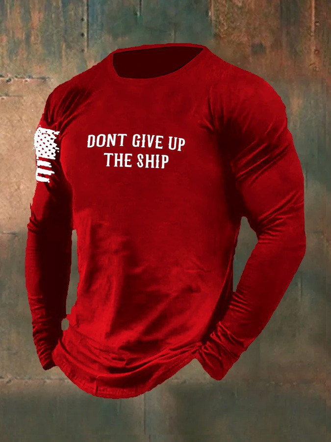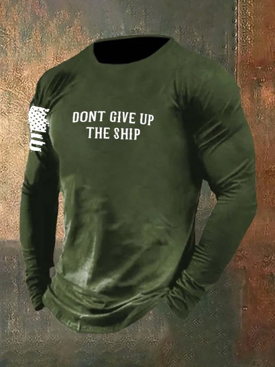 US Veteran Don’t Give Up The Ship Men’s Long Sleeve Shirt USA Flag Veteran Outfit Gift Ideas.