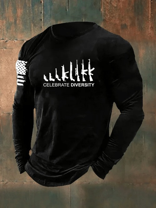 US Veteran Long Sleeve Shirt Celebrate Diversity Gun Rights Graphic Military Veteran Gifts.