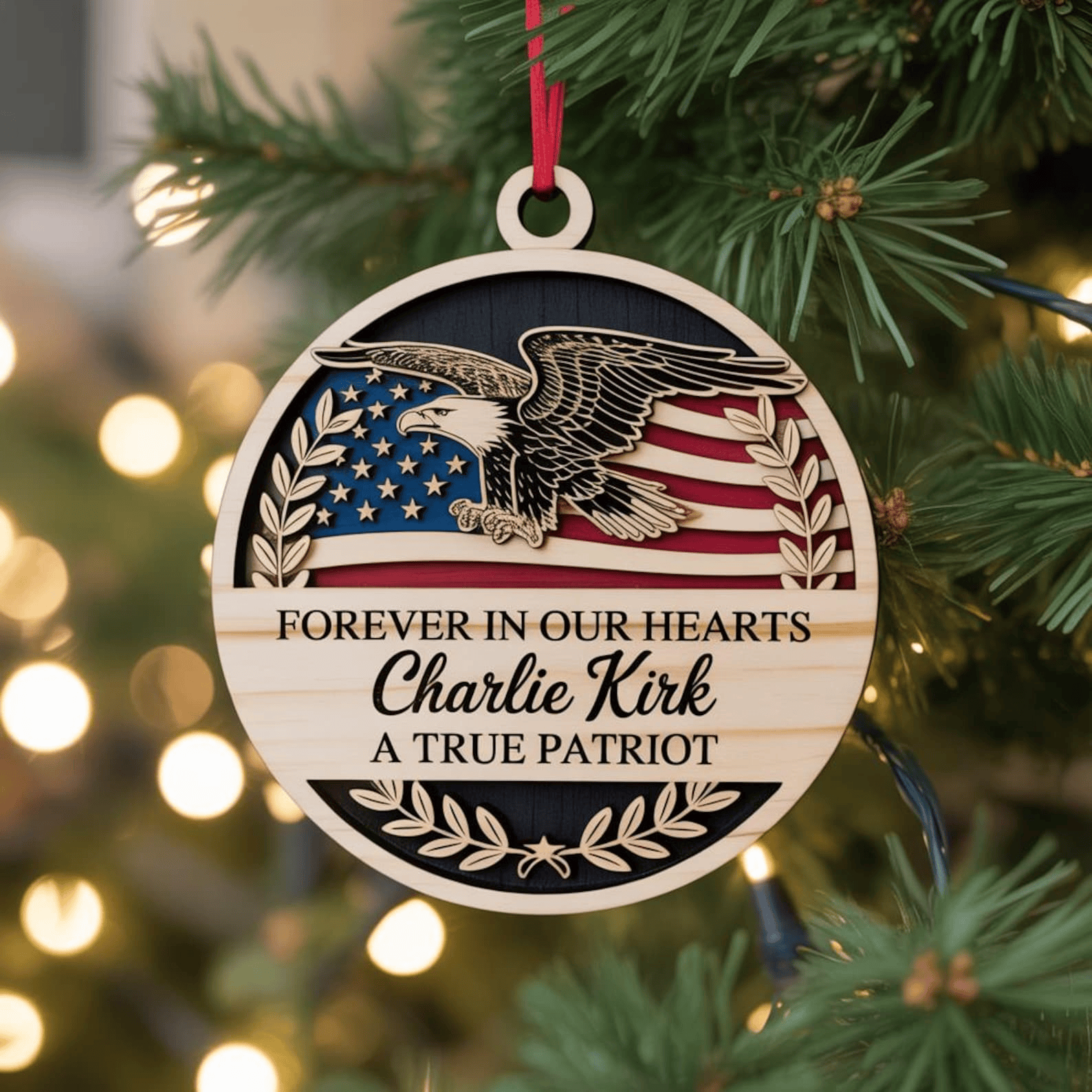 Charlie Kirk Freedom Memorial Ornament Justice For Charlie Kirk Wooden Ornament Christmas Tree Decoration.