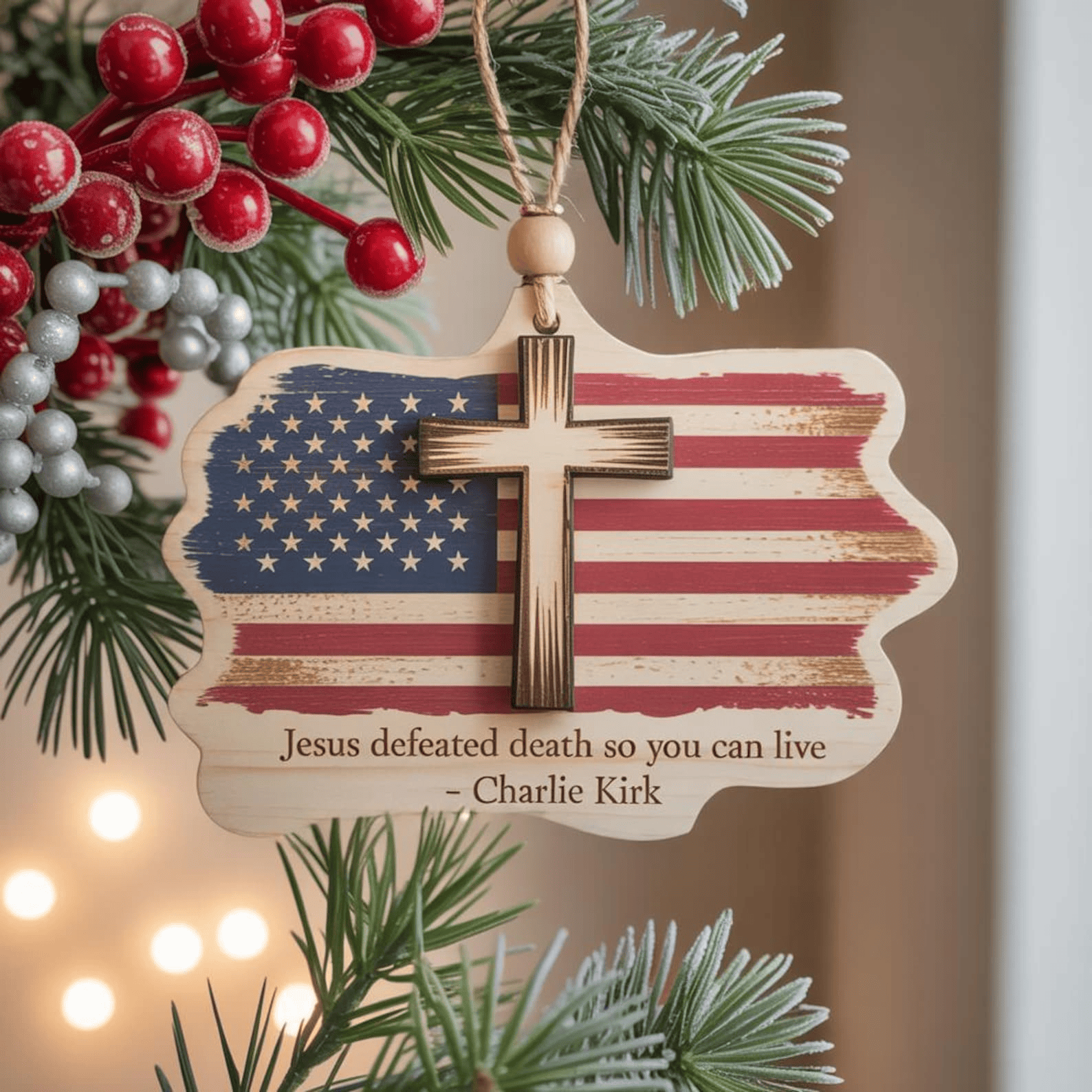 Memorial Charlie Kirk Wooden Ornament Stand Against Violence For All Ornament Christmas Tree Decoration