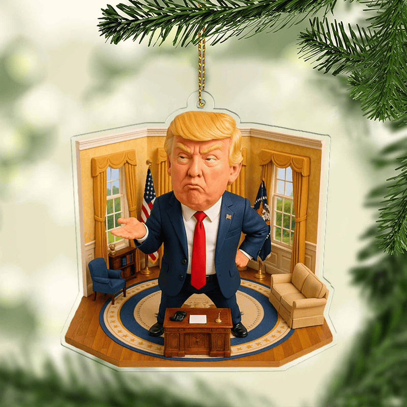 Trump in Oval Office Christmas Suit 2D Acrylic Ornament MAGA Ornament for Car & Christmas Tree Decor.