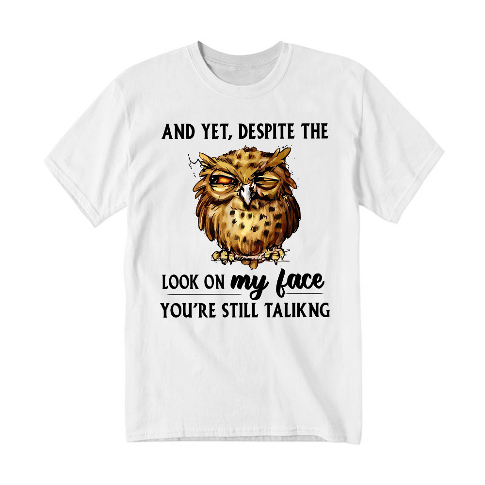 And Yet Despite The Look On My Face Shirt Funny Owl T-Shirt Gifts For Brother. T-Shirts printed in the USA Exclusive products made by: Rivonaprint. Material: 5.3-ounce, 100% cotton. Seamless double-needle 7/8. Taped neck and shoulders; Tearaway label. Decoration type: Digital Print. All products are made to order and proudly printed to the best standards…