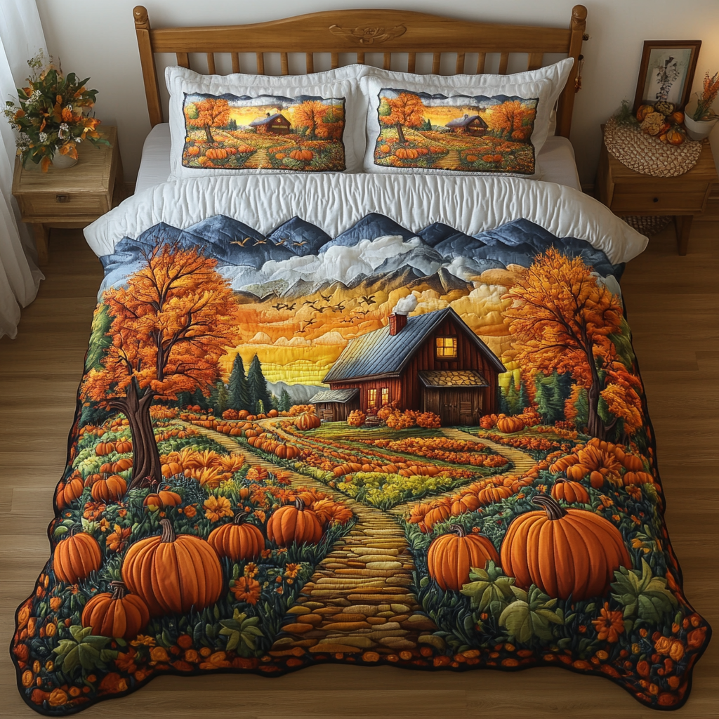 Pumpkin Path Quilted Bedding Set Aesthetic Room Decor Cool Fall Gifts