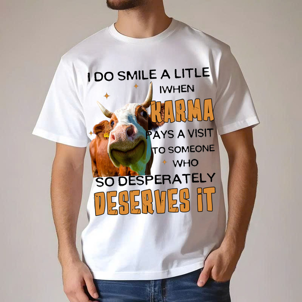 I Do Smile A Litlle When Karma Pays A Visit Shirt Funny Cow Graphic T Shirt Gift For Guys. T-Shirts printed in the USA Exclusive products made by: Rivonaprint. Material: 5.3-ounce, 100% cotton. Seamless double-needle 7/8. Taped neck and shoulders; Tearaway label. Decoration type: Digital Print. All products are made to order and proudly printed…