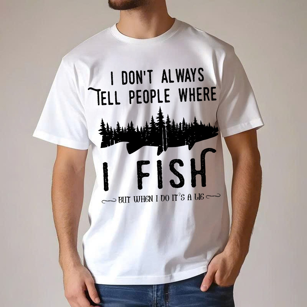 I Don’t Always Tell People Where I Fish Shirt Fisherman Sayings Humor T-Shirt Gift Idea. T-Shirts printed in the USA Exclusive products made by: Rivonaprint. Material: 5.3-ounce, 100% cotton. Seamless double-needle 7/8. Taped neck and shoulders; Tearaway label. Decoration type: Digital Print. All products are made to order and proudly printed to the best standards…