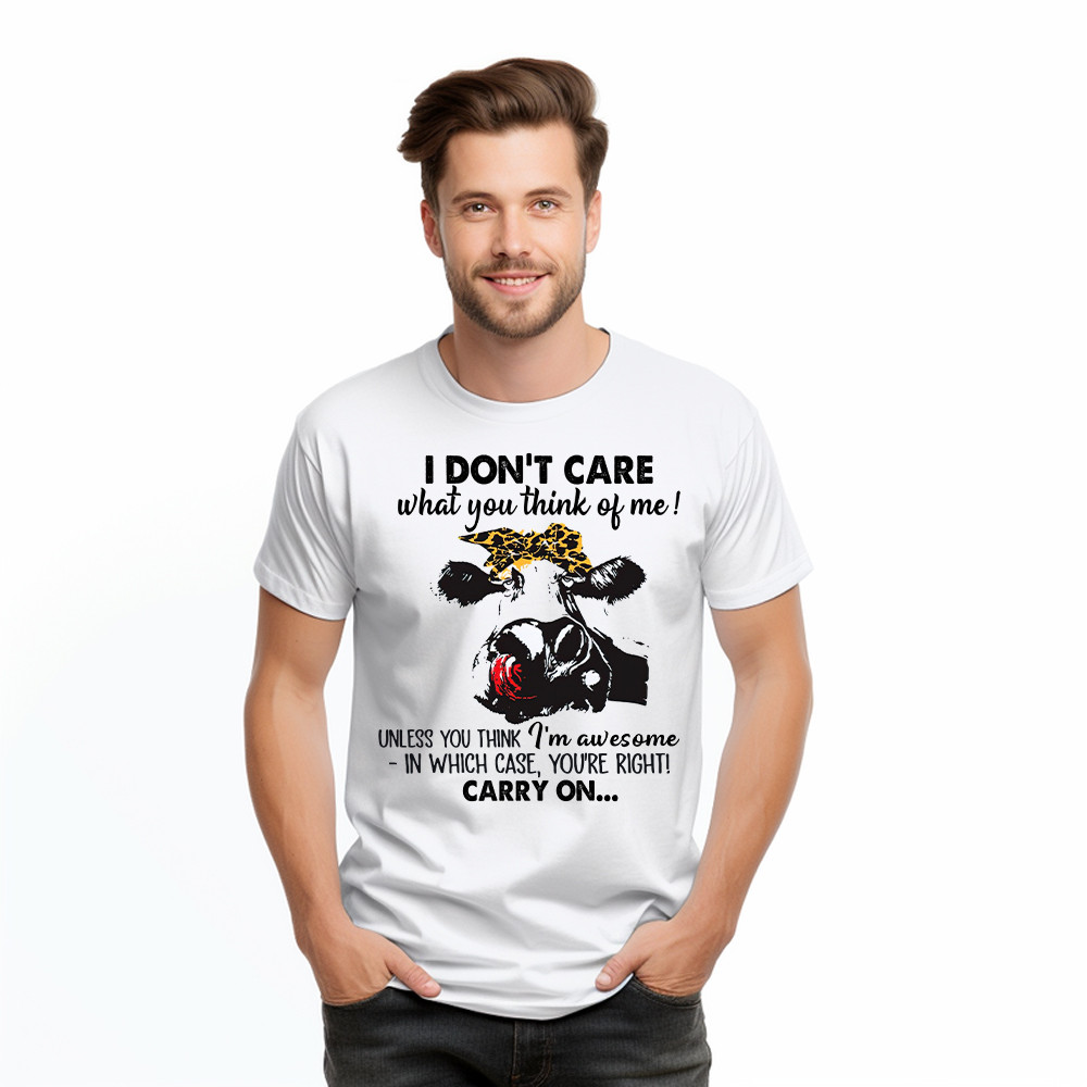 I Don’t Care What You Think Of Me Shirt Funny Cow Female T Shirt Gift For Ranchers And Farmers. T-Shirts printed in the USA Exclusive products made by: Rivonaprint. Material: 5.3-ounce, 100% cotton. Seamless double-needle 7/8. Taped neck and shoulders; Tearaway label. Decoration type: Digital Print. All products are made to order and proudly printed…