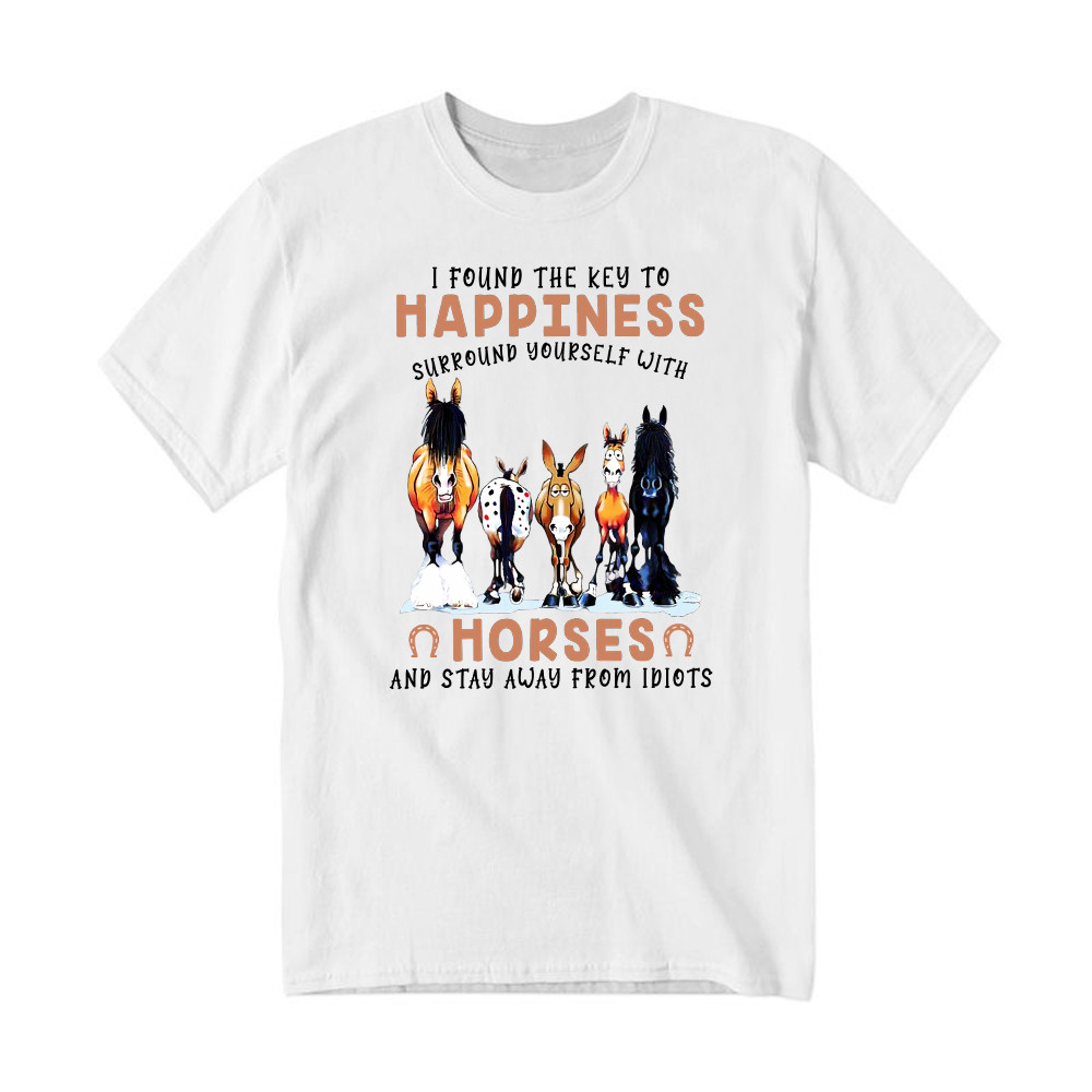 I Found The Key To Happiness Surround Yourself With Horses T-Shirt Horse Riding Lovers Gifts. T-Shirts printed in the USA Exclusive products made by: Rivonaprint. Material: 5.3-ounce, 100% cotton. Seamless double-needle 7/8. Taped neck and shoulders; Tearaway label. Decoration type: Digital Print. All products are made to order and proudly printed to the best standards…