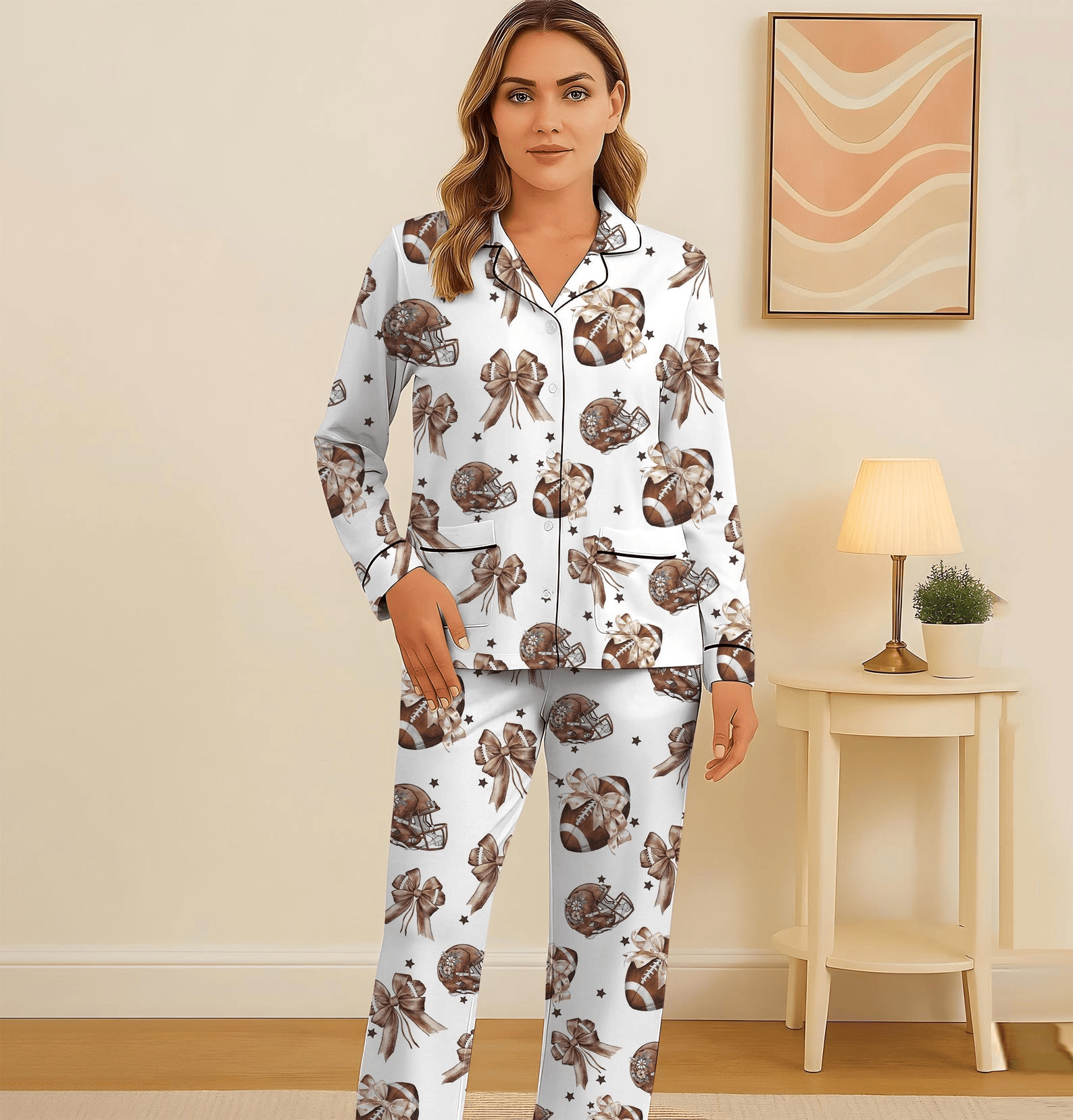 Coquette Floral Football And Bow Pajamas Set Game Day Sleepwear Sport Lover Gift.