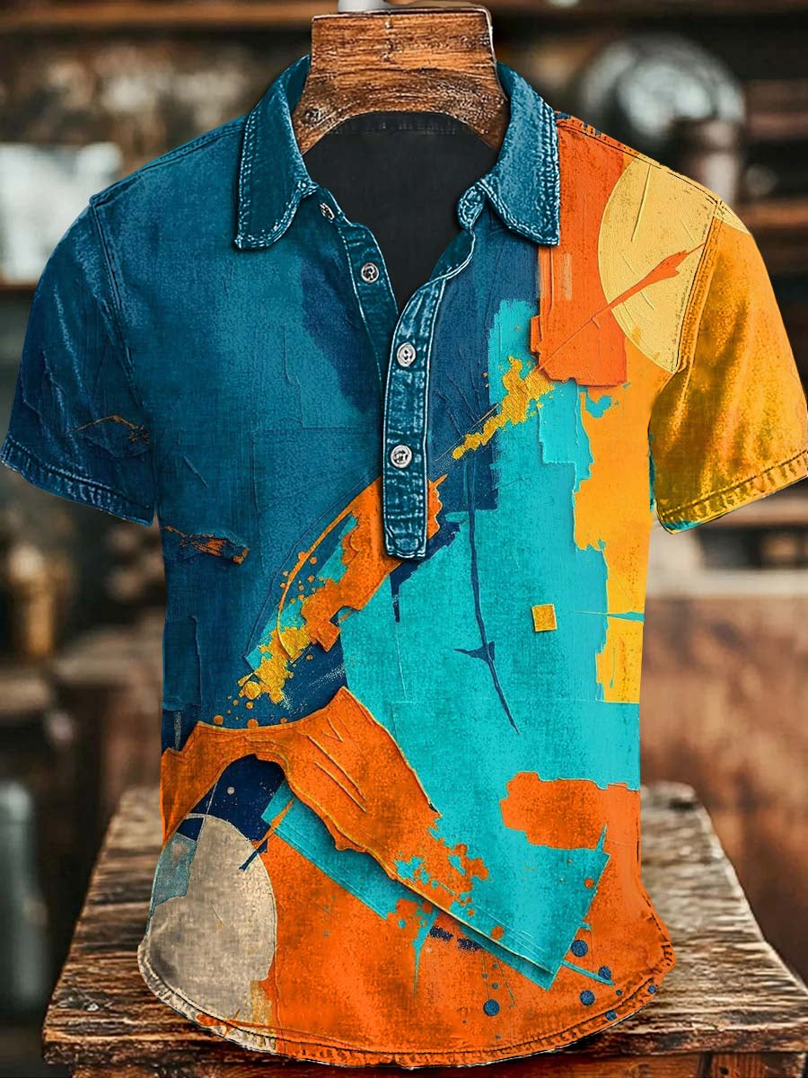 Abstract Color Block Art Patchwork Printed Short Sleeve Polo Shirt Gifts For Halloween Day