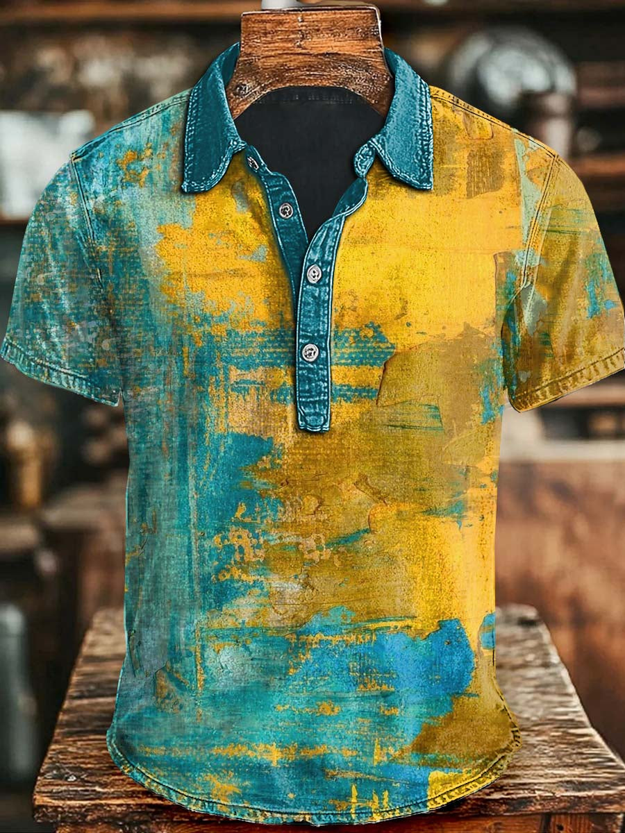 Abstract Oil Gradient Color Print Casual Short Sleeve Polo Shirt Halloween Gift For Lovers And Besties