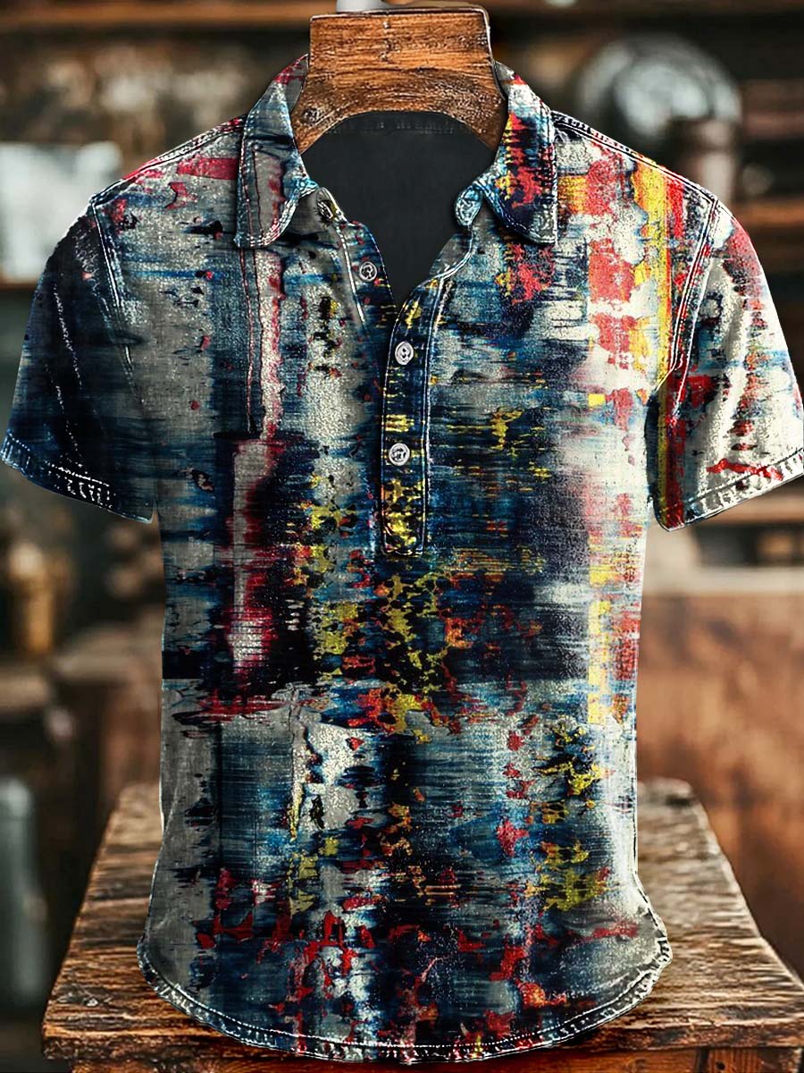 Abstract Ripple Printed Casual Printed Short Sleeved Polo Shirt Present Ideas For Halloween Day