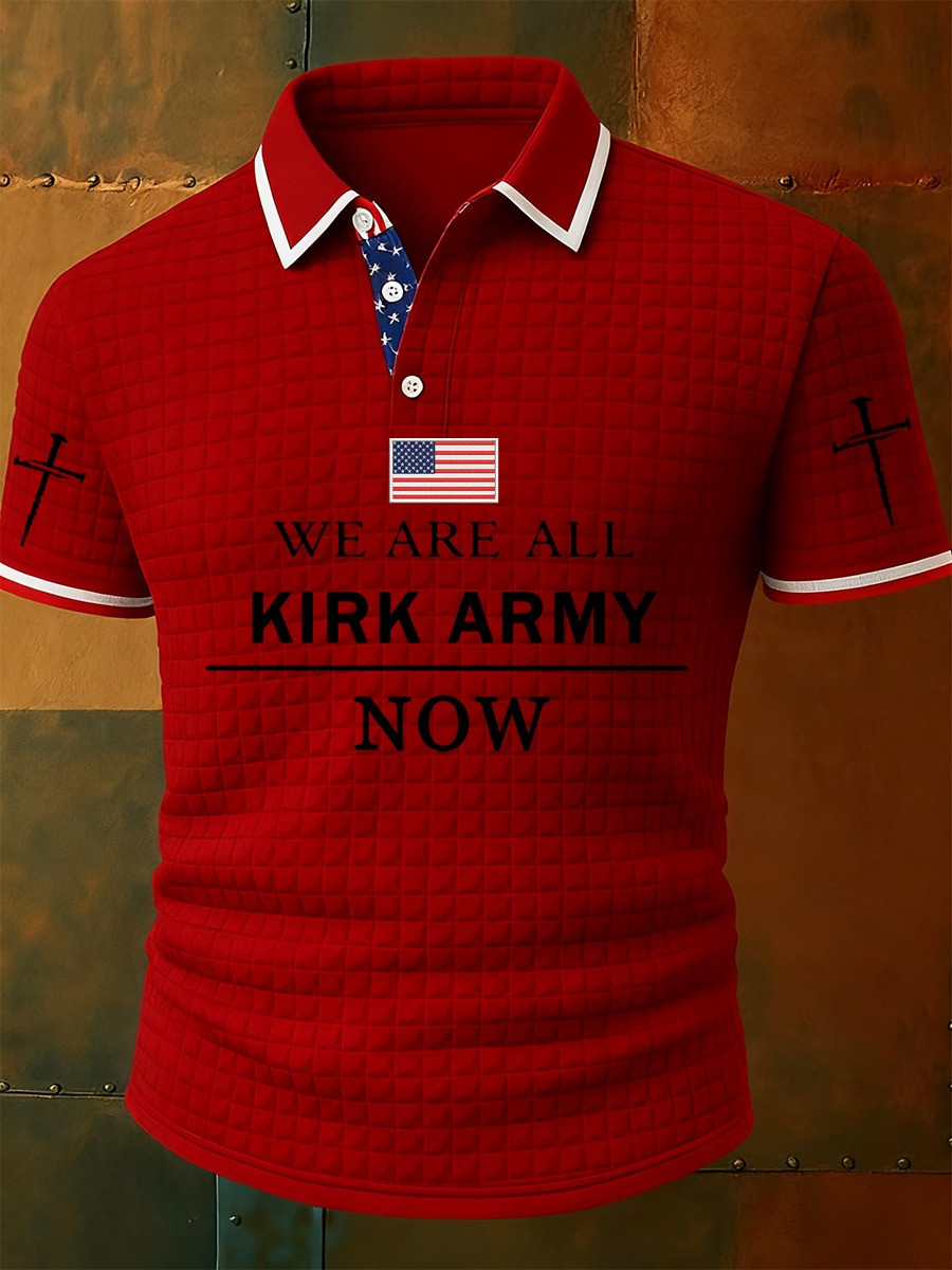 Charlie Kirk Waffle Polo Shirt Cross Great American Patriot Christian Faith Freedom Gifts.