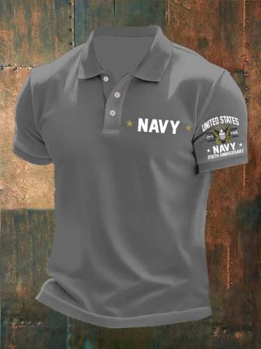 U.S. Navy Veteran 250th Anniversary Printed Men’s Polo Shirt Military Clothing Gifts