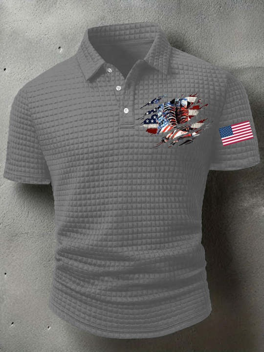 US Veteran Corn Kernels Polo Shirt Military Boots American Flag Patriotic Gifts.