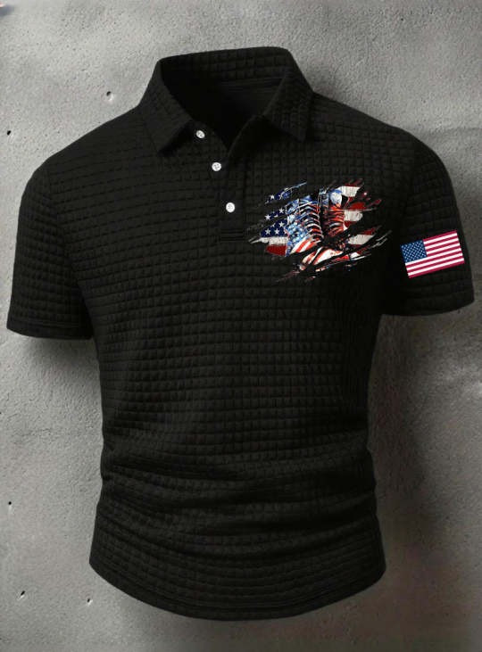 US Veteran Waffle Polo Shirt Military Boots American Flag Patriotic Gifts For Men.