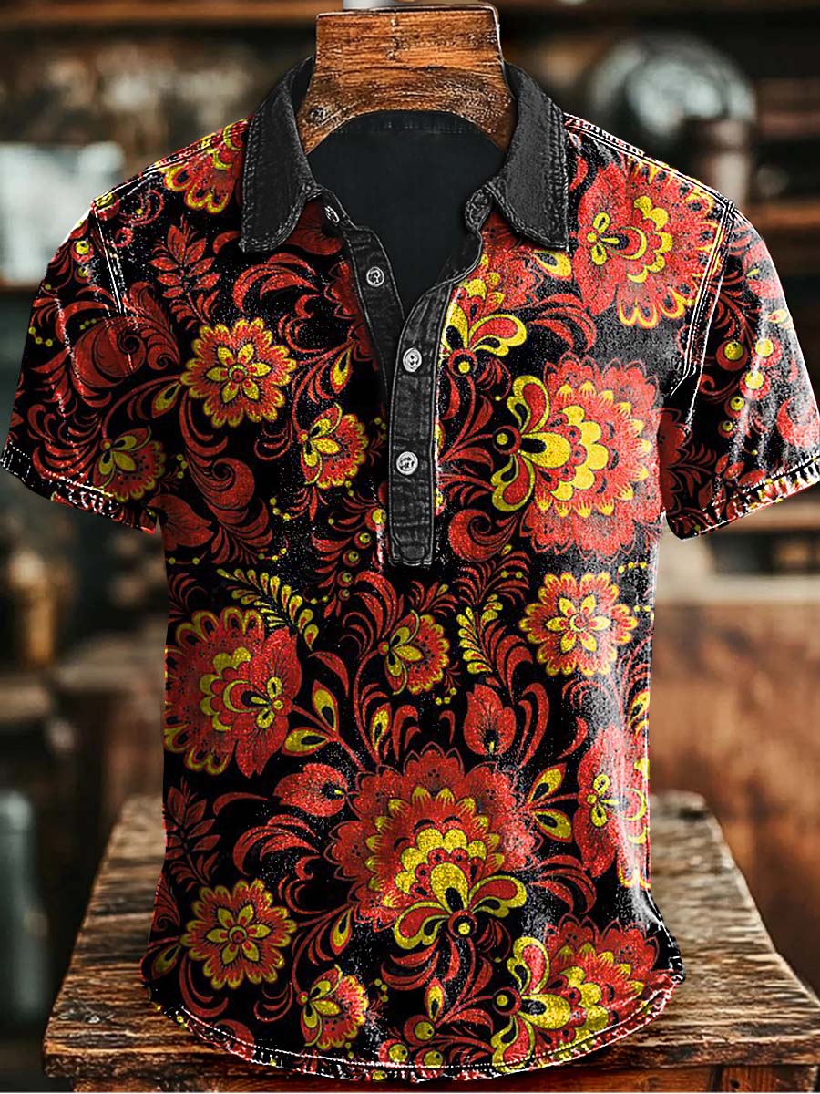 Vintage Abstract Art Floral Print Casaul Short Sleeve Polo Shirt Witch Costume Gift For Brother